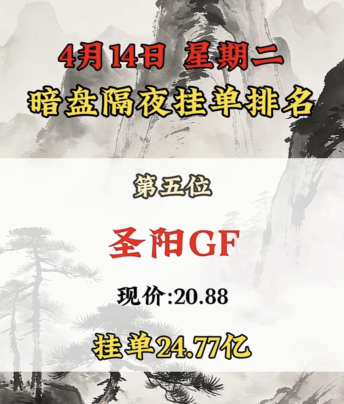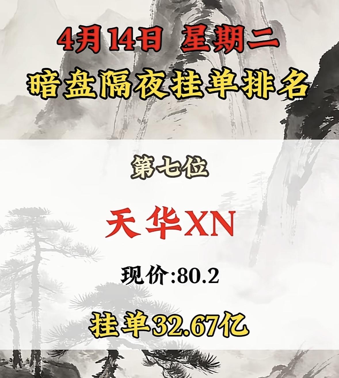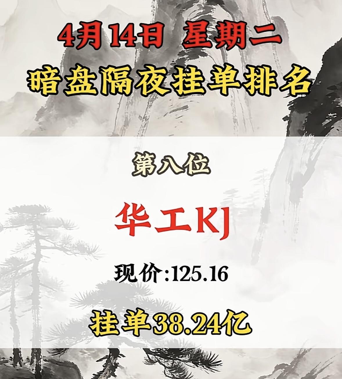 4月14日周二暗盘隔夜挂单排行榜揭晓 4月14日暗盘隔夜挂的华工科技排名第八,