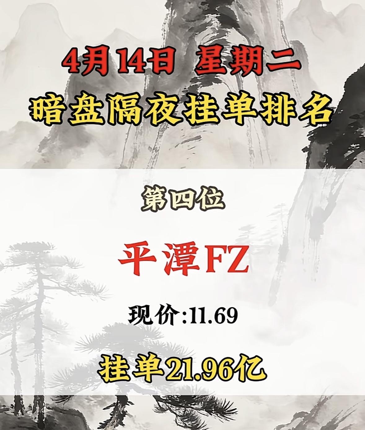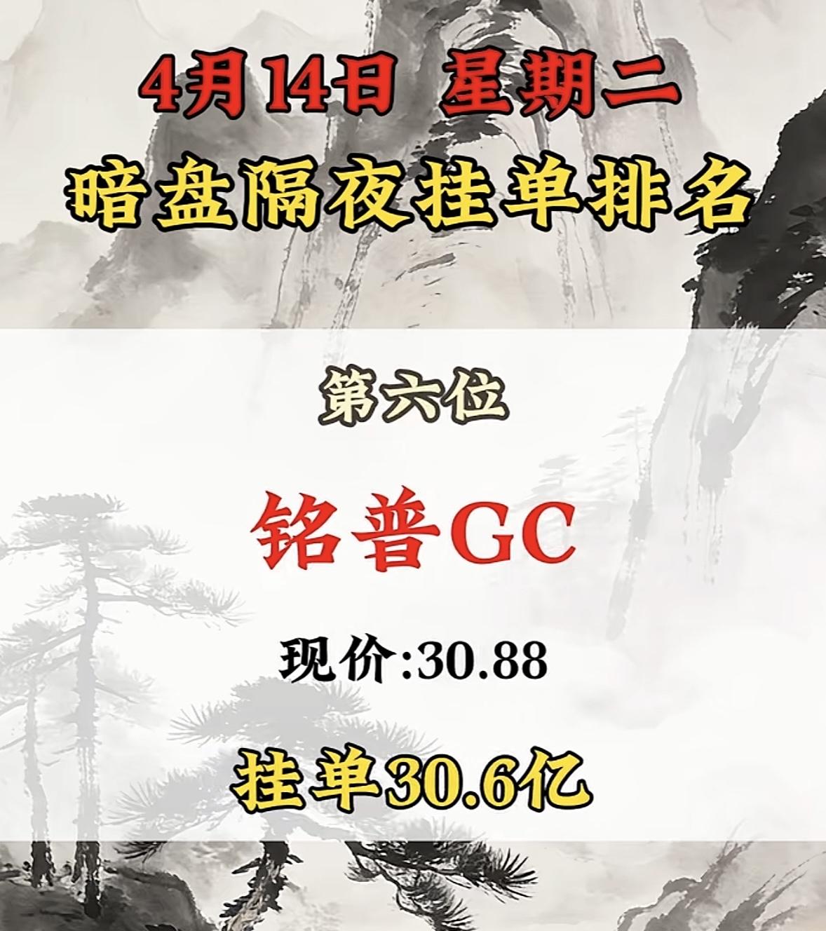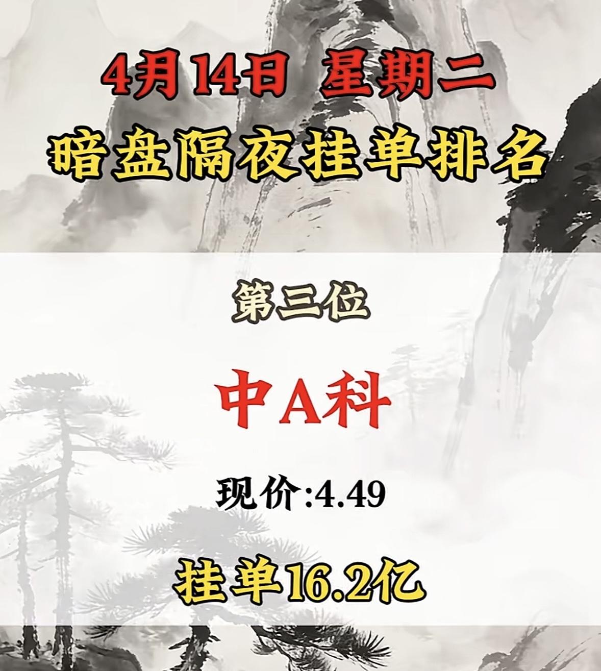 4月14日周二暗盘隔夜挂单排行榜揭晓