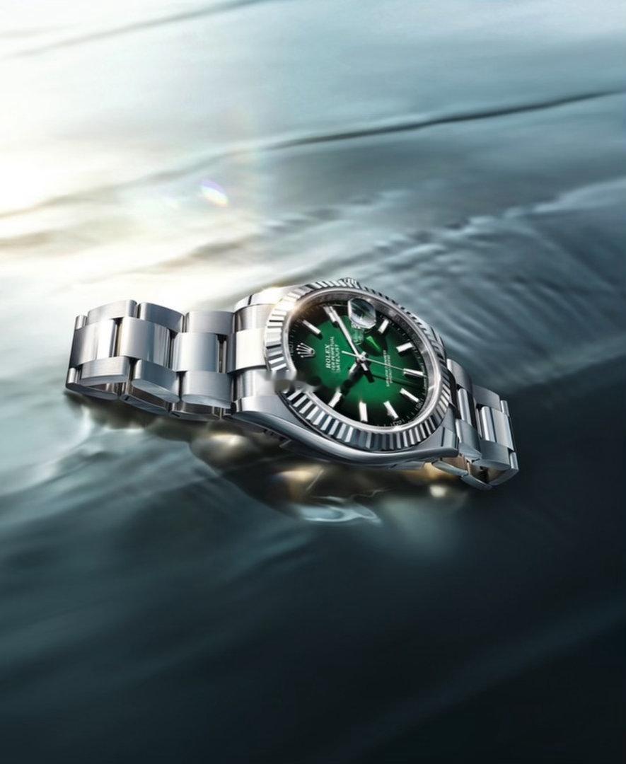 · 蚝式恒动36,搭配纪念花纹图案· 日志型41,渐变绿漆面表盘· 全新设计的游艇名仕型II· 白色珐琅表盘的迪通拿