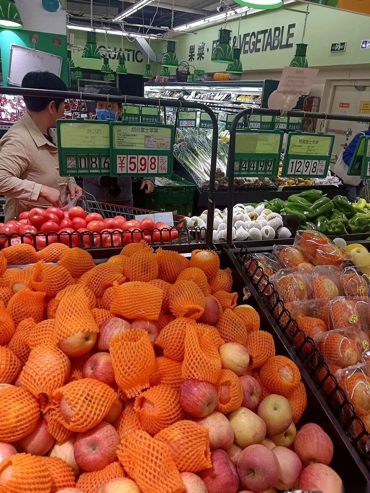小汤山草莓,两斤十块。而超市里,一颗一颗摆在盒子里的烟台苹果,一斤就要五块九毛八。