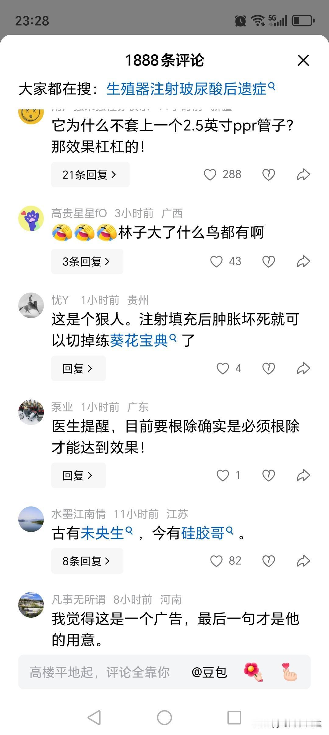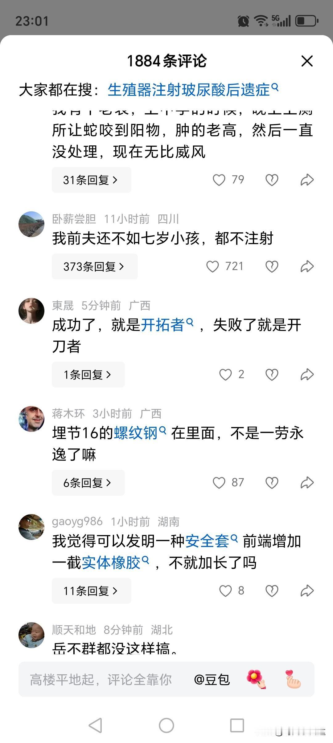自己想办法给生殖器注射了177克硅胶,注射后效果出乎意料,造成表面凸凹不平,类似菠萝,