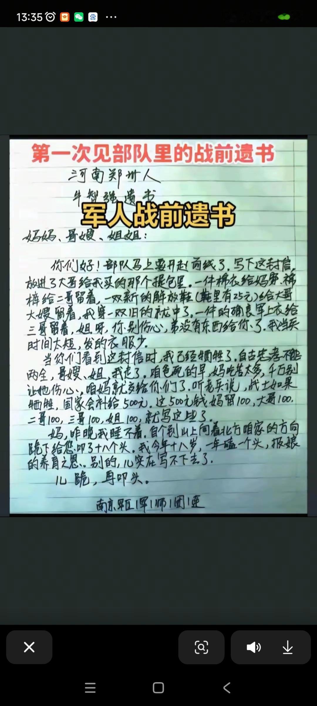 我曾写过一封战前遗书,那是当兵第二年,部队紧急通知,说可能要投入实战,大家要做好