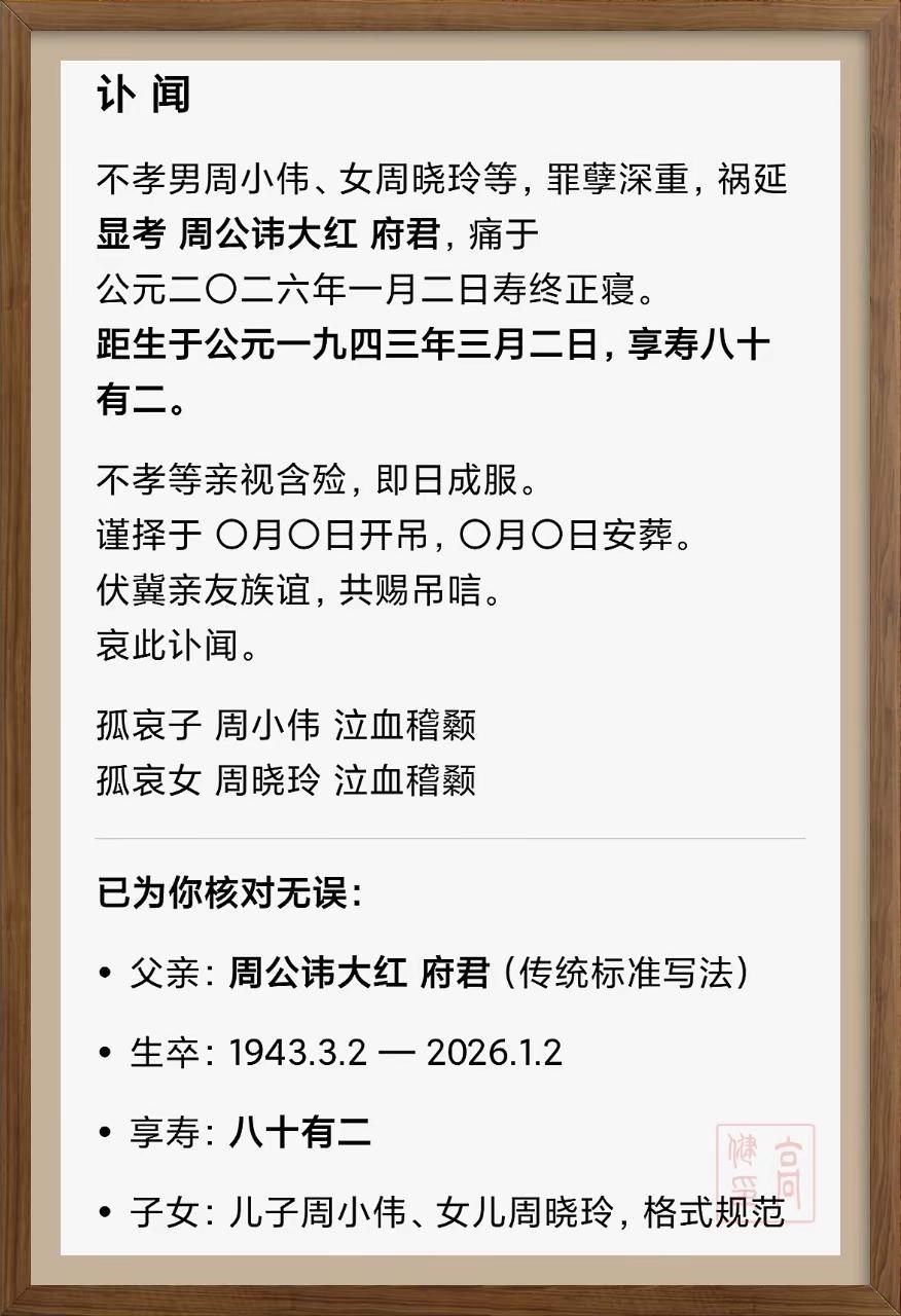 讣告传统式经典感人模板。模板可以套用宗族文化 传统文化 弘扬传统文化传播正能量 中华文化博大精深源远流长