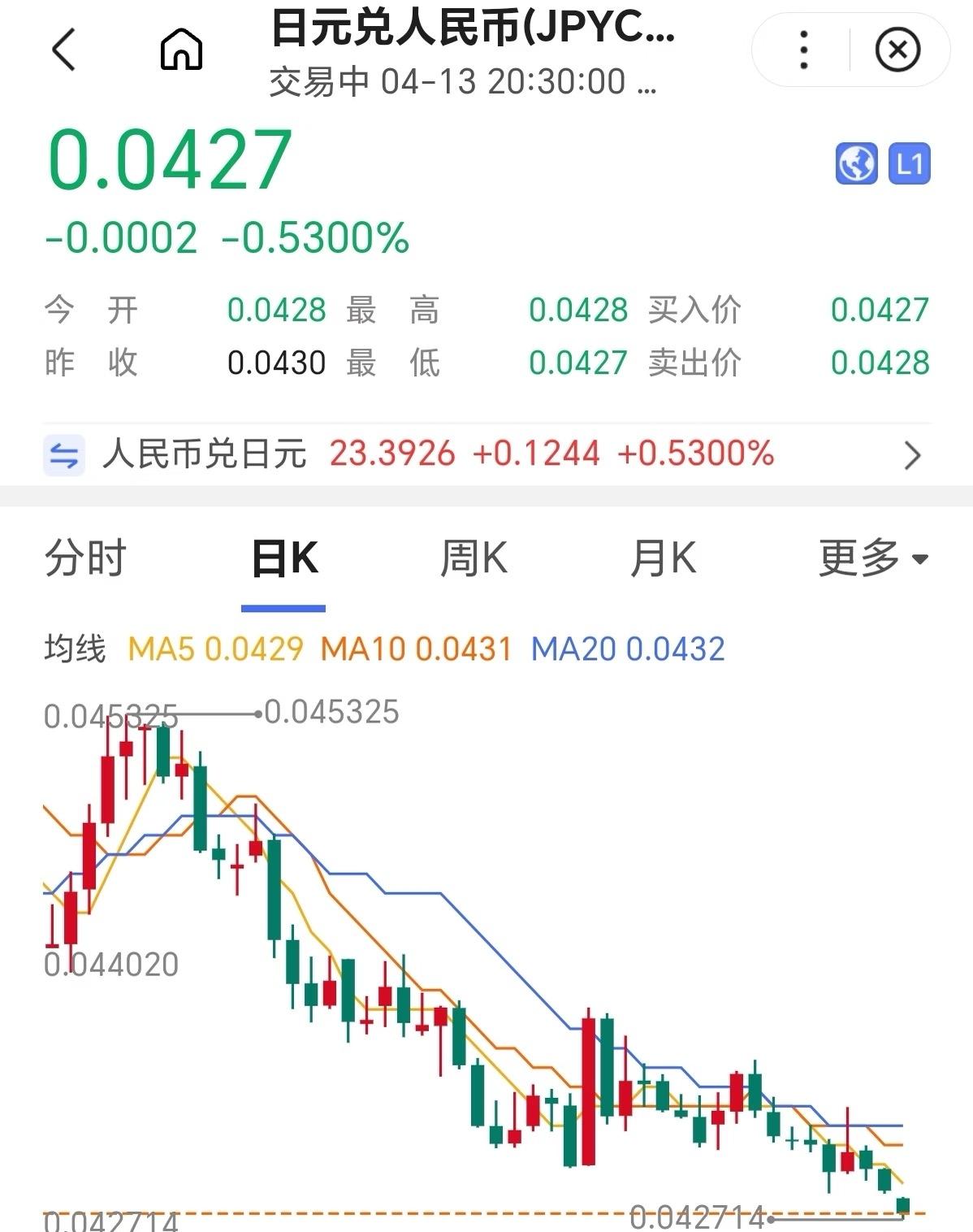 今日日元换人民币再创史上新低 很难想象跟2011年相比,日元兑人民币竟然贬值了