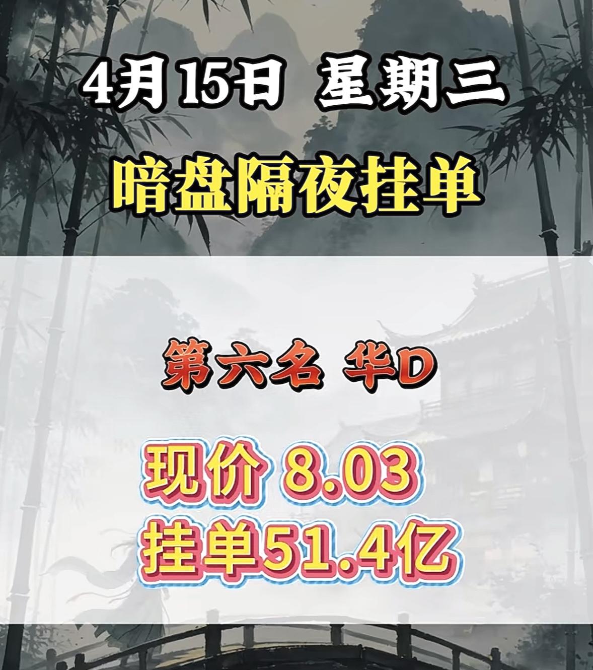 4月15日周三暗盘隔夜挂单排行榜出炉 4月15日暗盘隔夜挂单,华电辽能值得关注