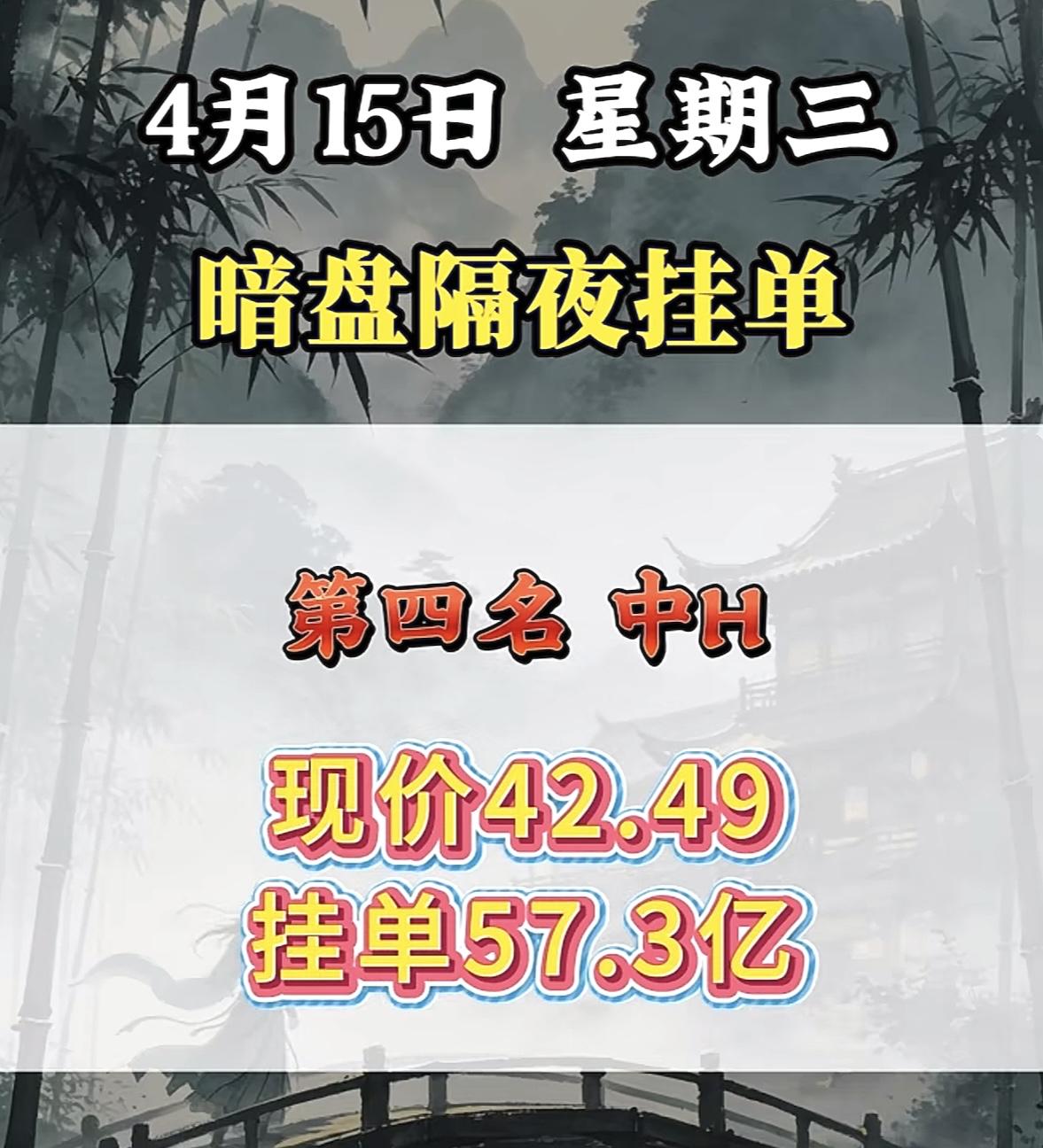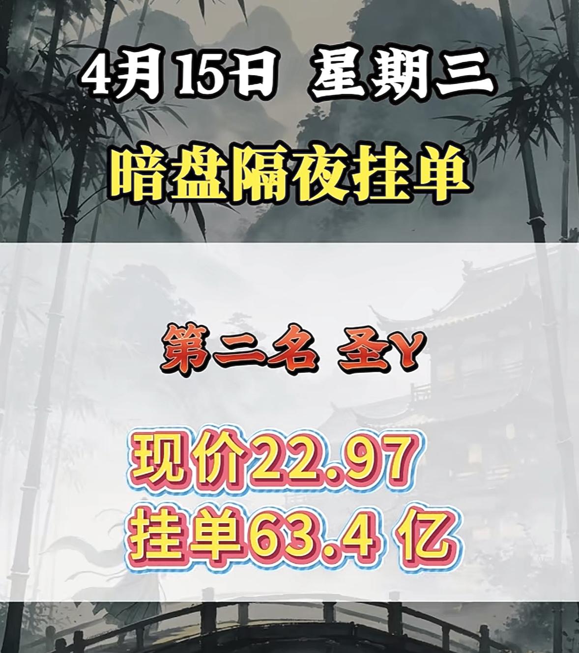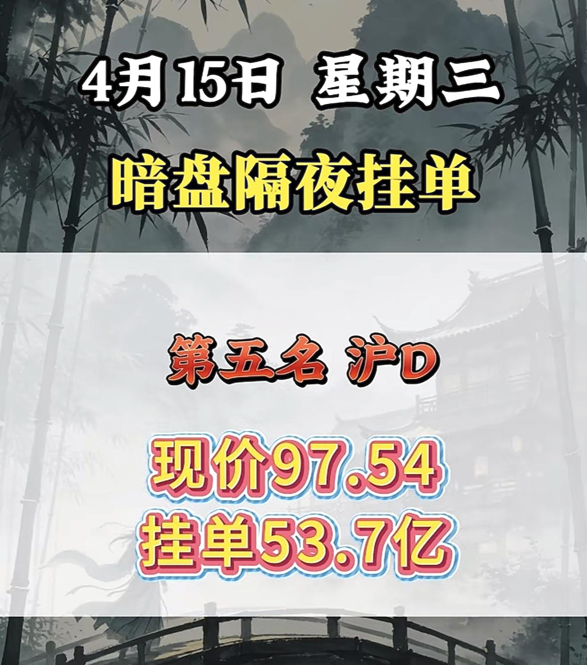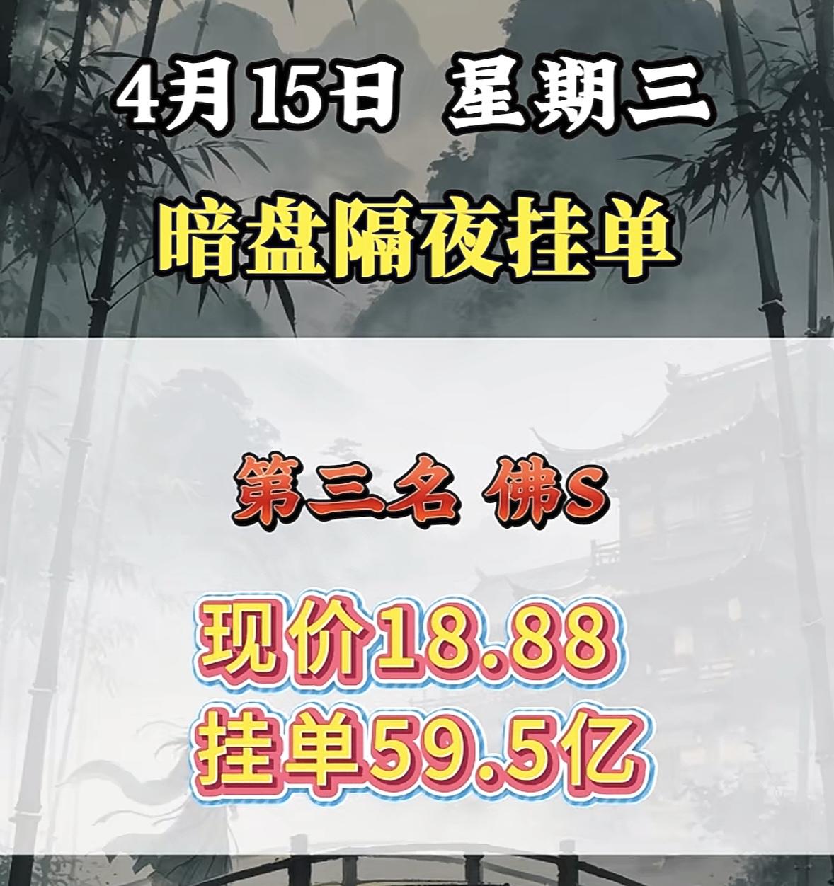 4月15日周三暗盘隔夜挂单排行榜出炉