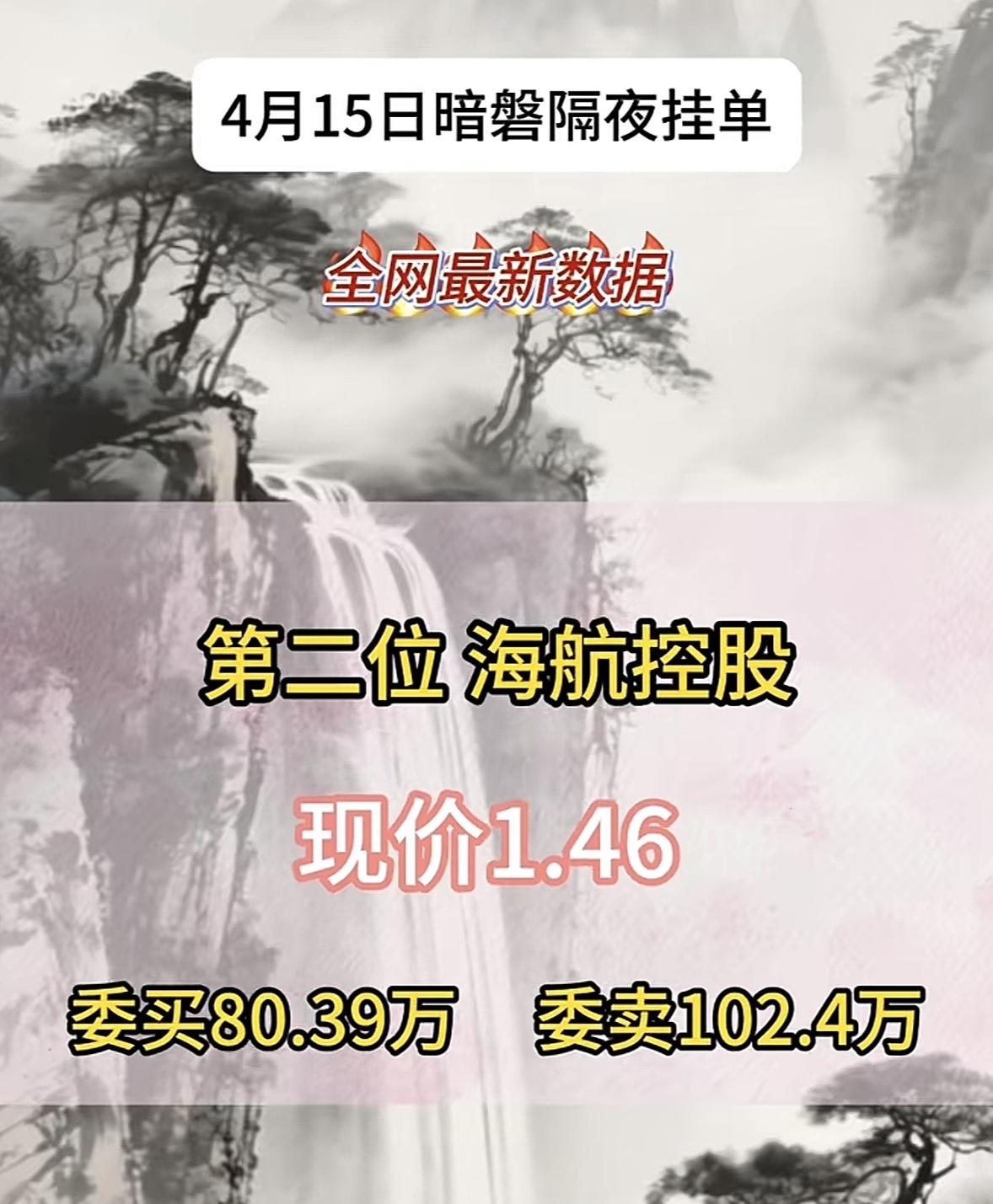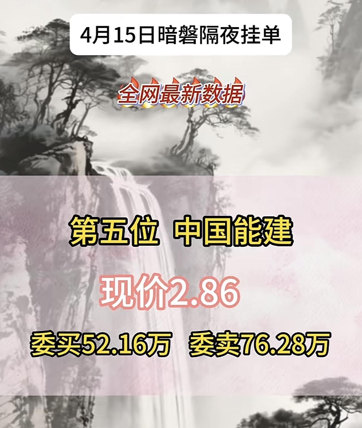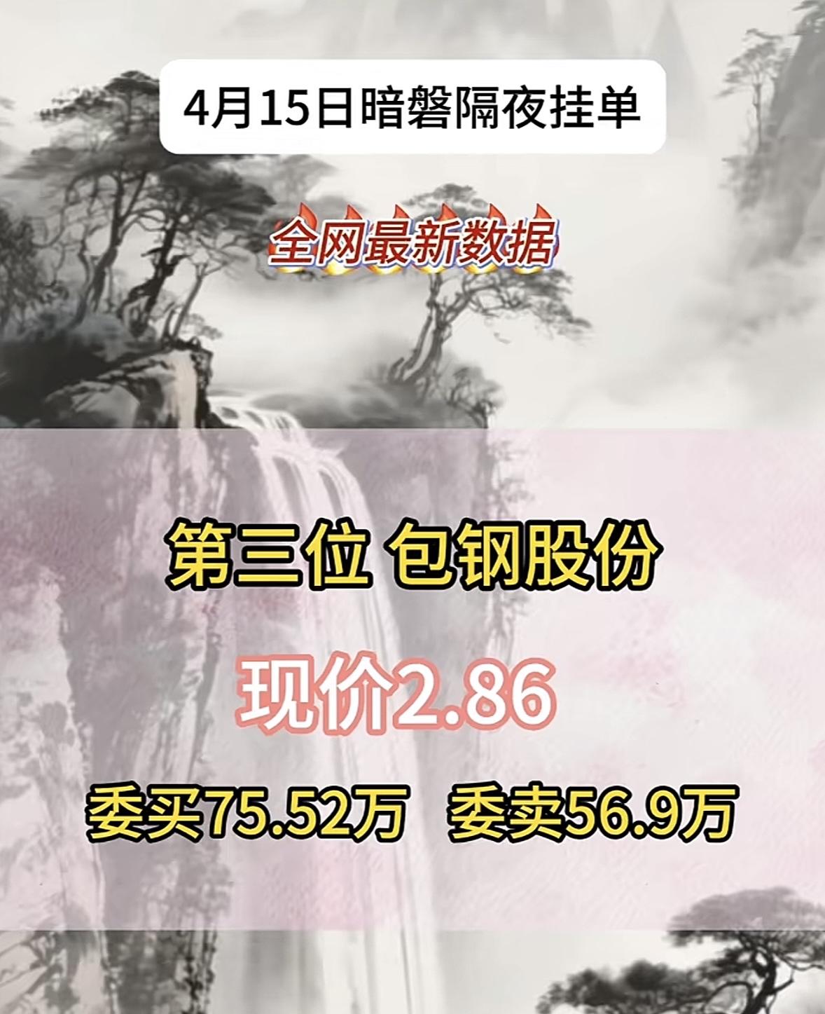 4月15日周三暗盘隔夜挂单排行榜出炉