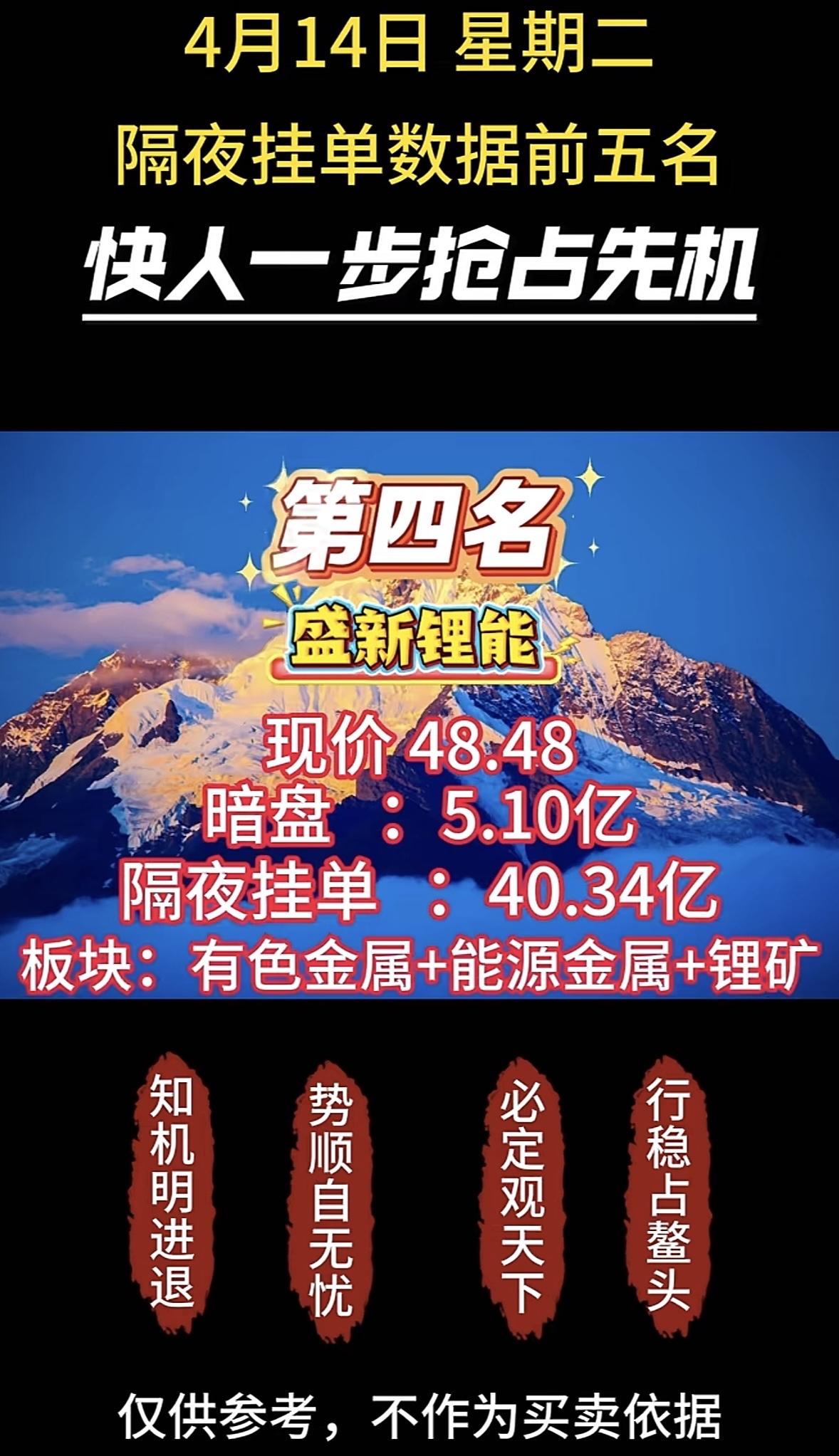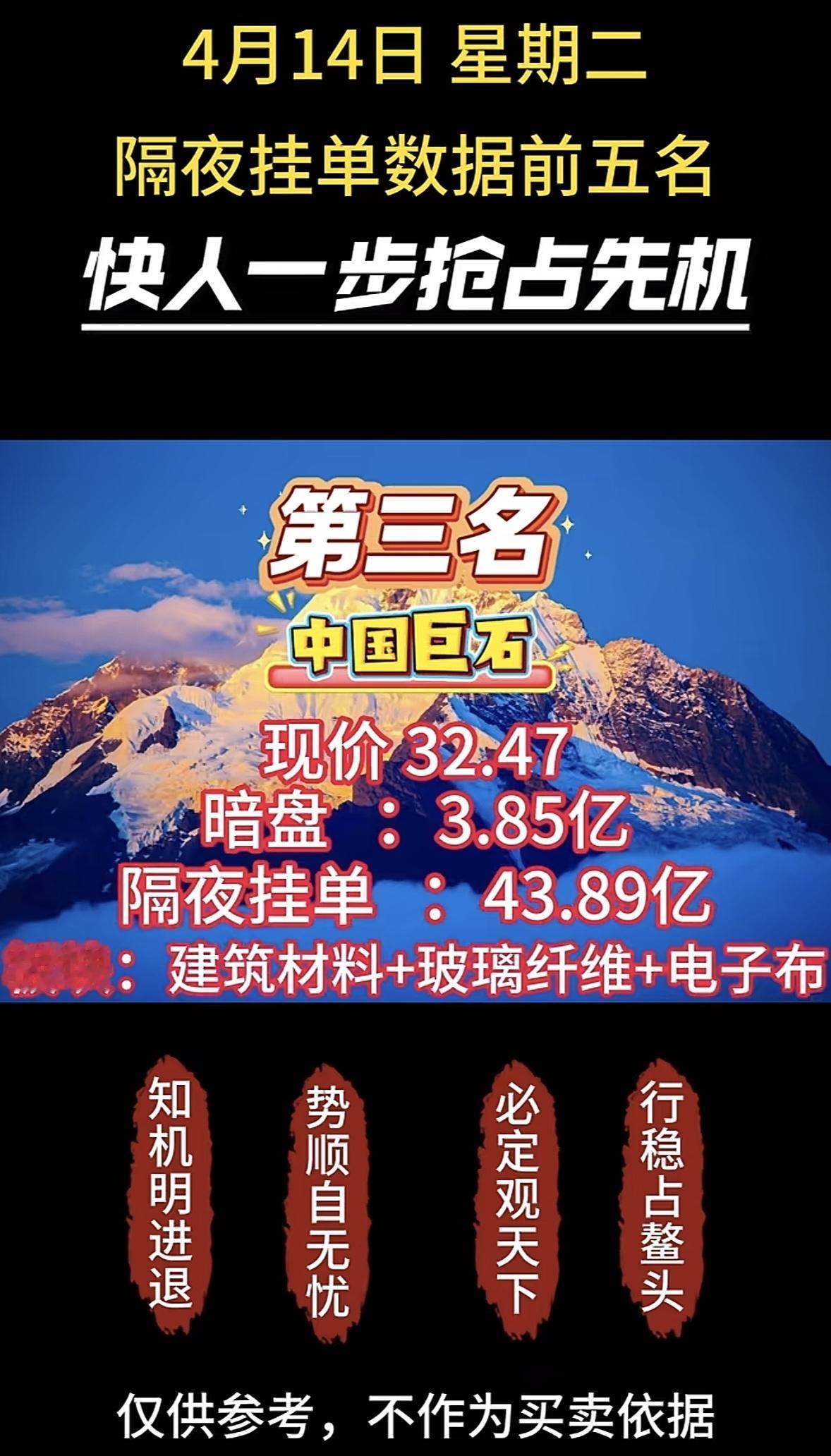 3月13日,中国能建以164.87亿的买单位居榜首,协鑫能科、金开新能等也名列前茅。到了3月18日,顺钠股份以145.44亿买单成第一,协鑫集成、赤天化等紧随其后。像节能风电,两次排名都较靠前,3月13日第五,3月18日第七。掌握这些隔夜挂单数据前五名的信息,说不定能快人一步抢占先机,在投资里多一份胜算呢。