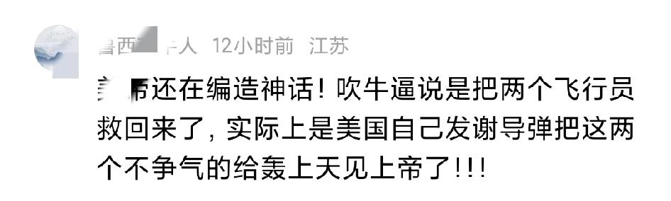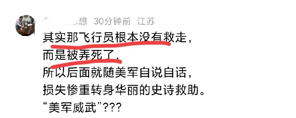 美国联合以色列对伊朗发动军事行动,属于非正义的侵略行径,这一点毋庸置疑。但有些反美网友,仅凭伊朗单方面报道就过度脑补,甚至嘲讽美军营救飞行员的行动,实在没必要。