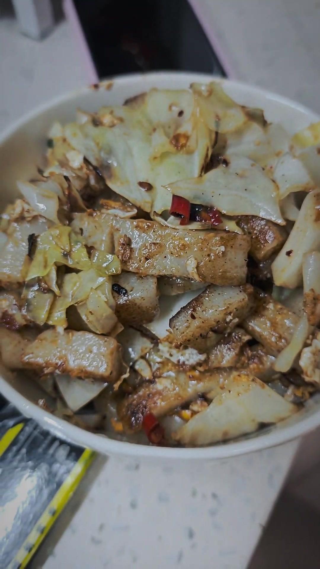 下午继续摊水管,累了就拿个100的配件当垫子,腰不酸腿不麻了。从白天干到晚上,中午的饭没扛饿,老爷子又下楼买了零食。每天干到8点半才下班,回家时老爷子都笑飞了。晚上媳妇做了炒年糕,软糯香甜,她还边偷吃边问“够不够吃”,我笑着说“够了,再煮点粉就好”。