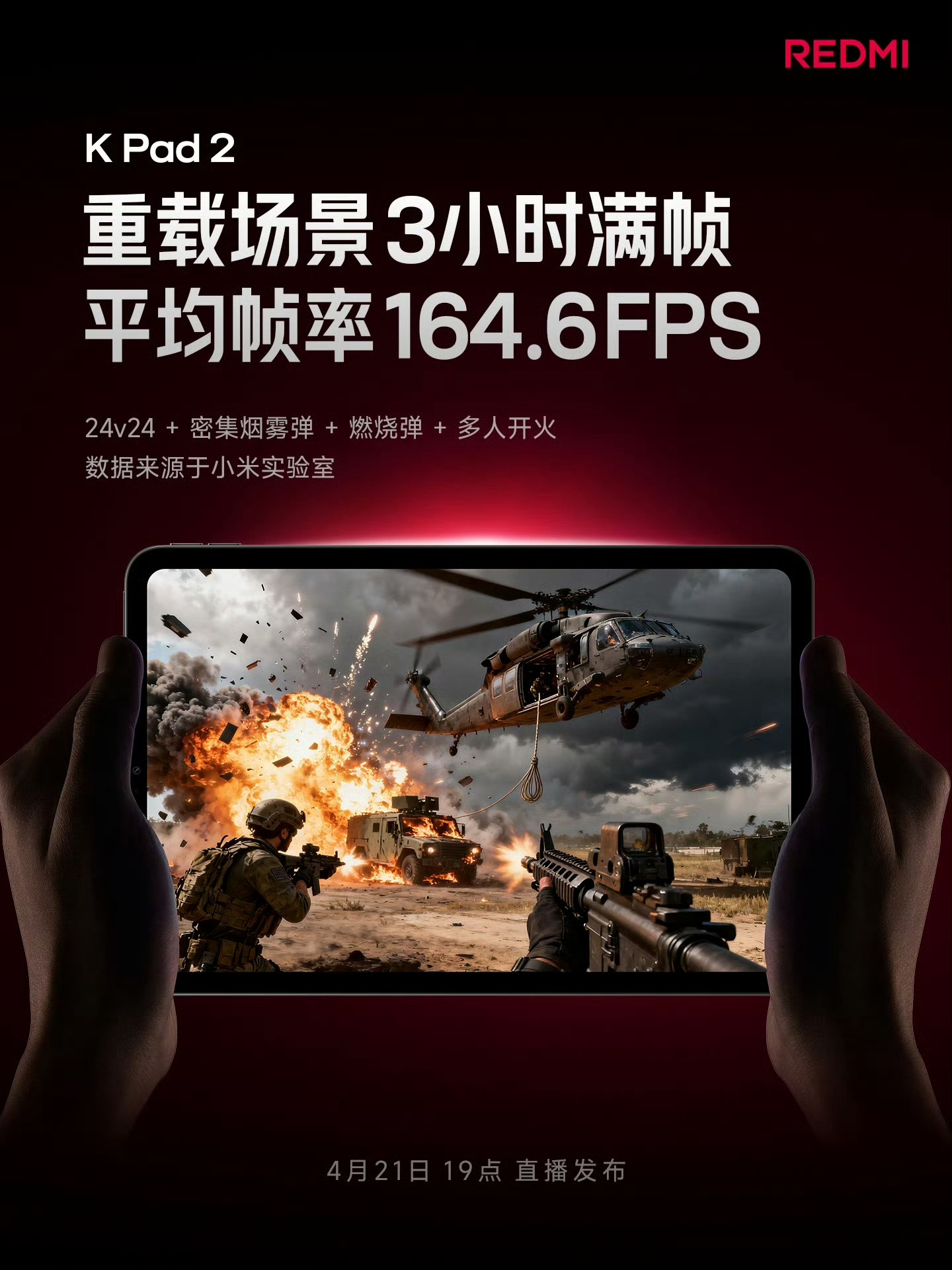 红米K Pad 2 游戏配置官宣!5 大枪战手游+原生165fps540Hz多指