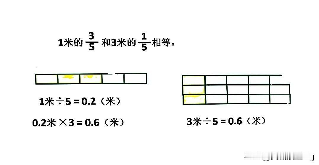 五下数学题解:3米的1/5和1米的3/5长度相等吗?