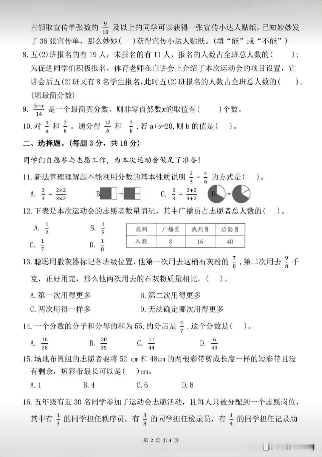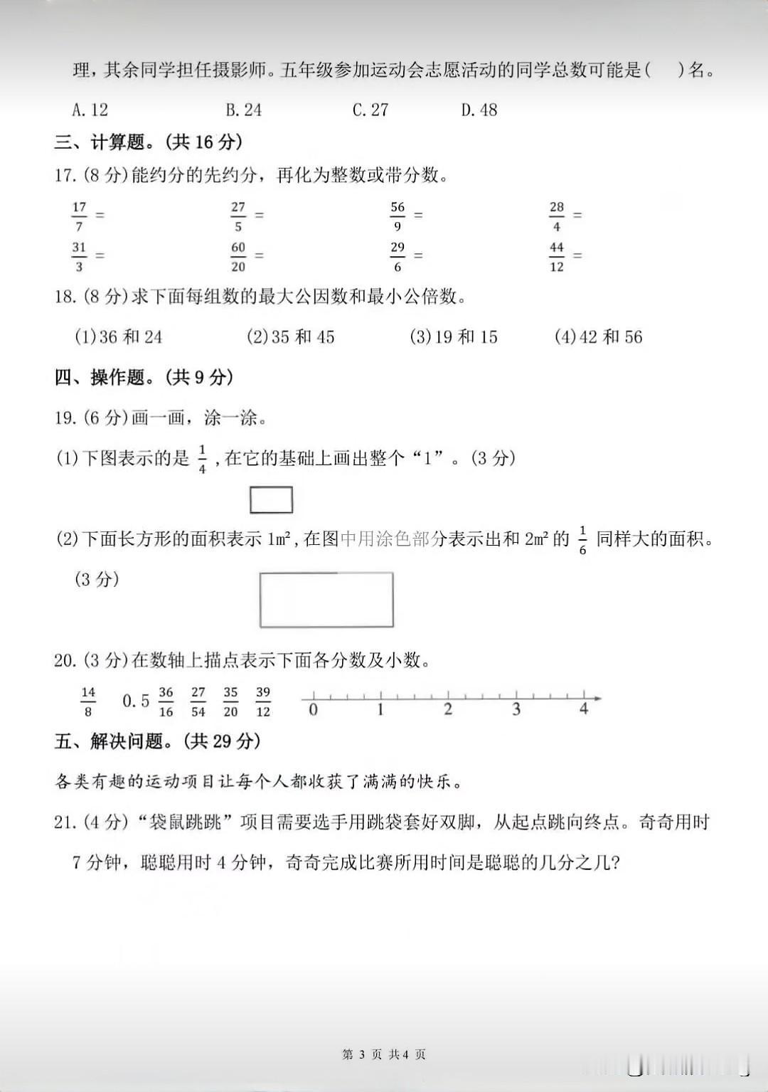 五年级下册数学第四单元综合测试卷(1)