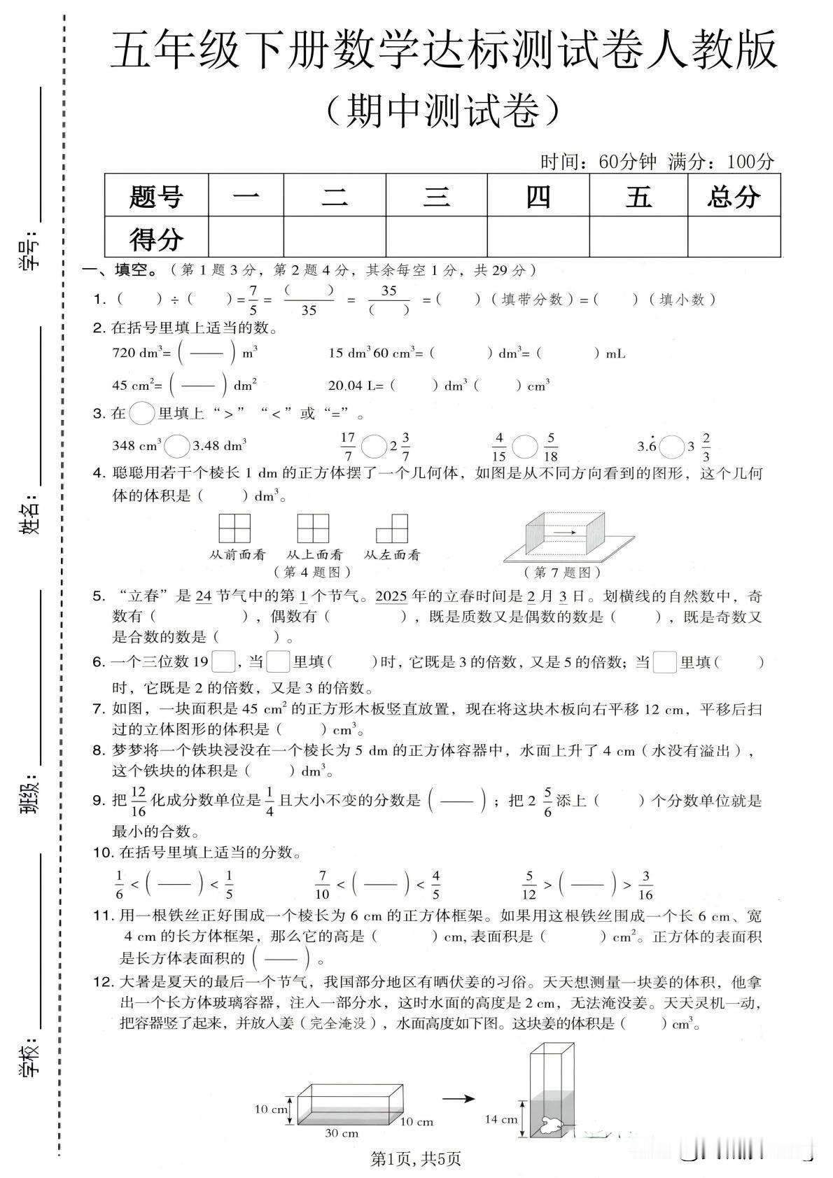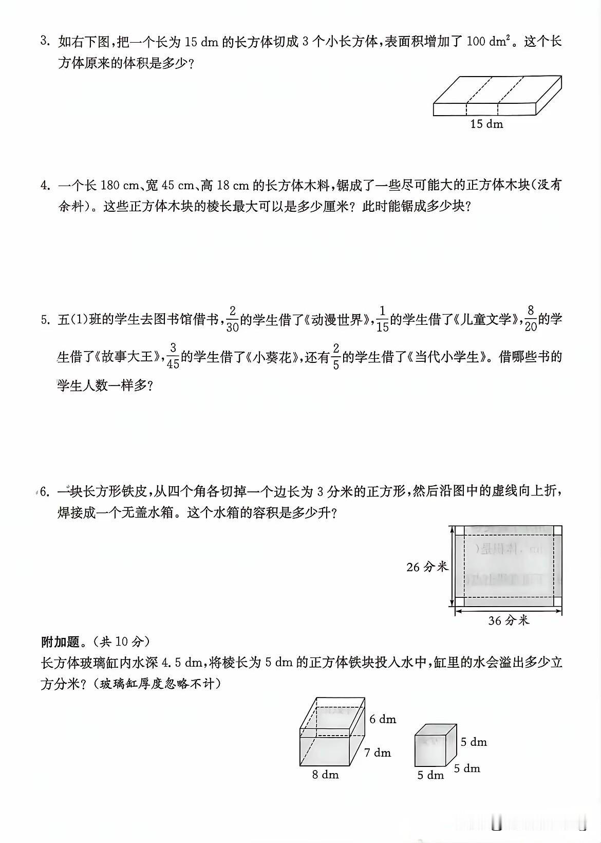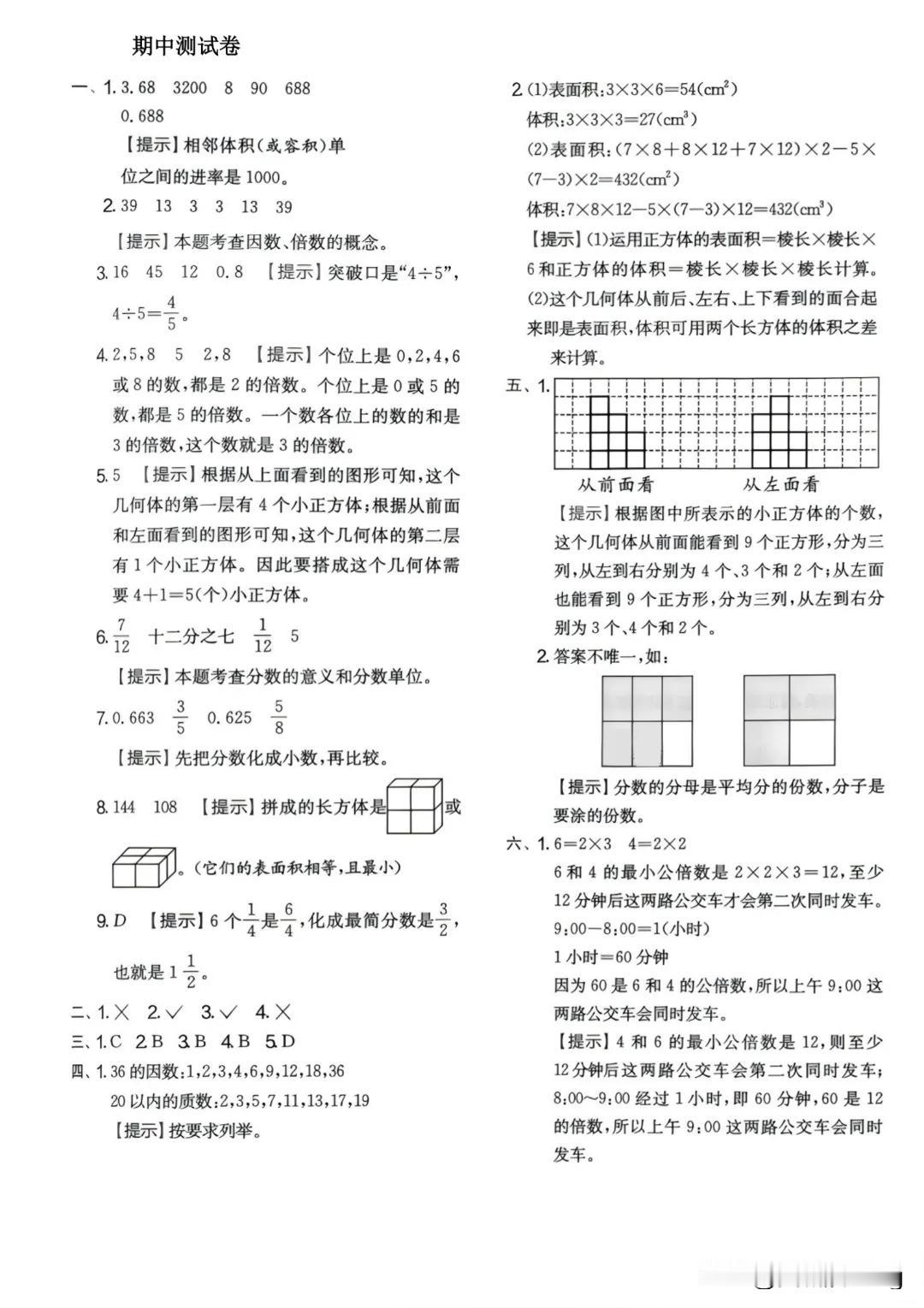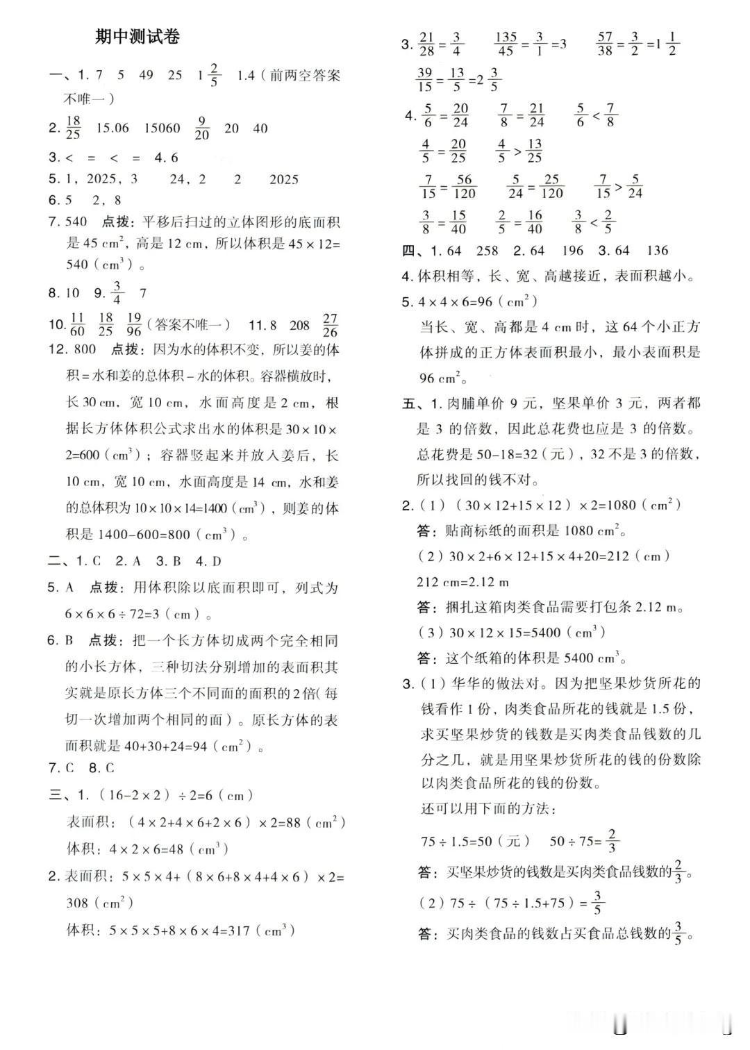 五年级下册数学期中拔尖测试卷(3套),挑战思维极限!