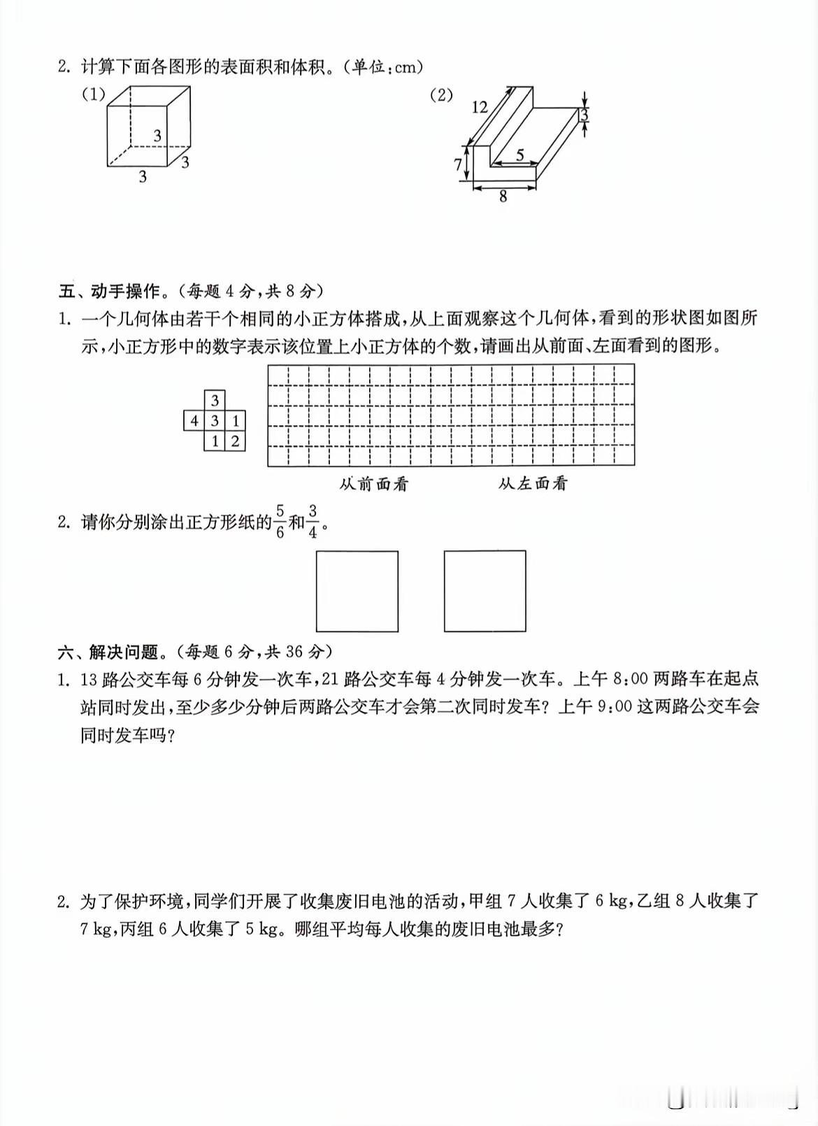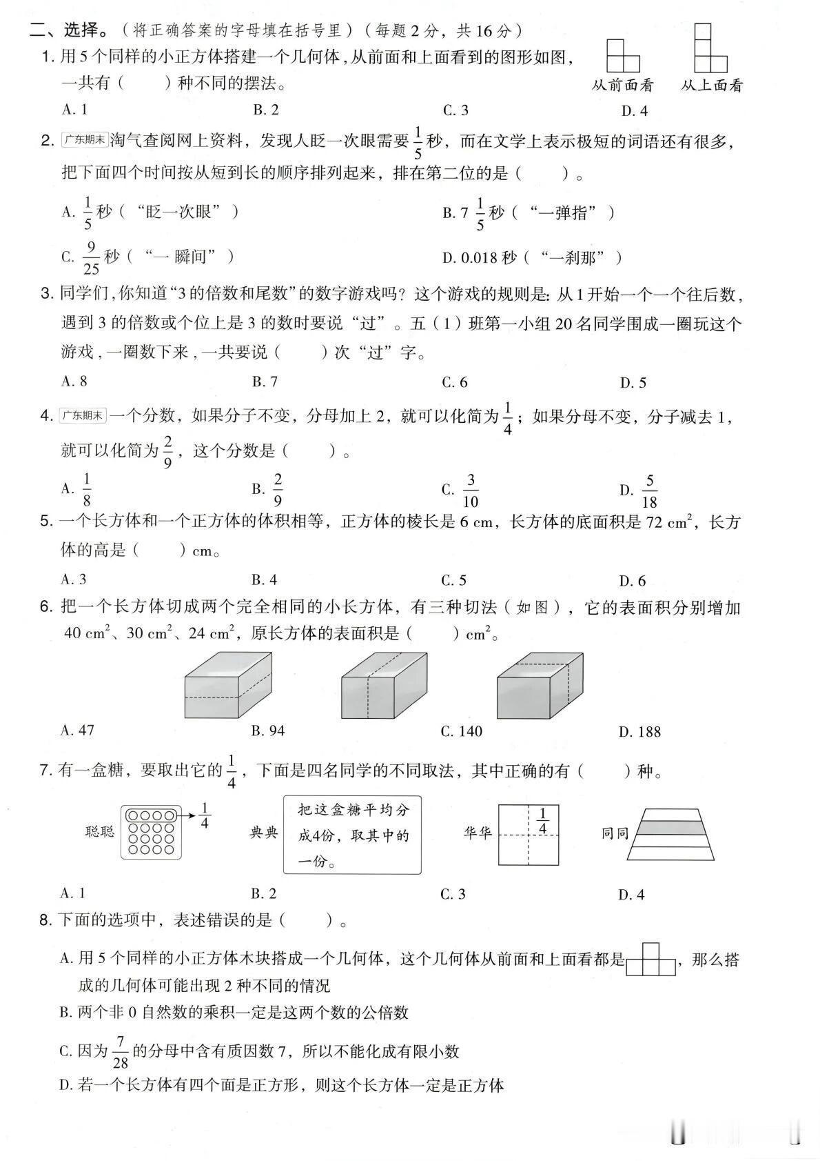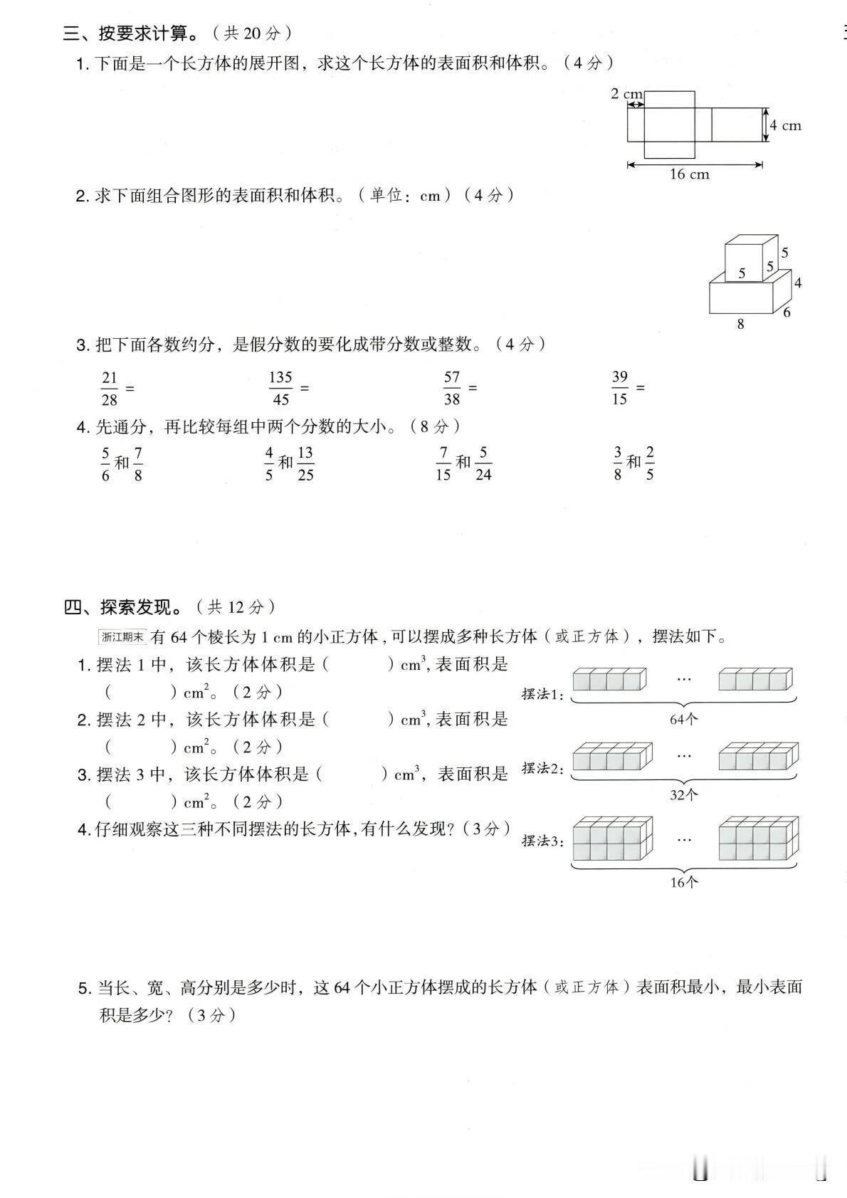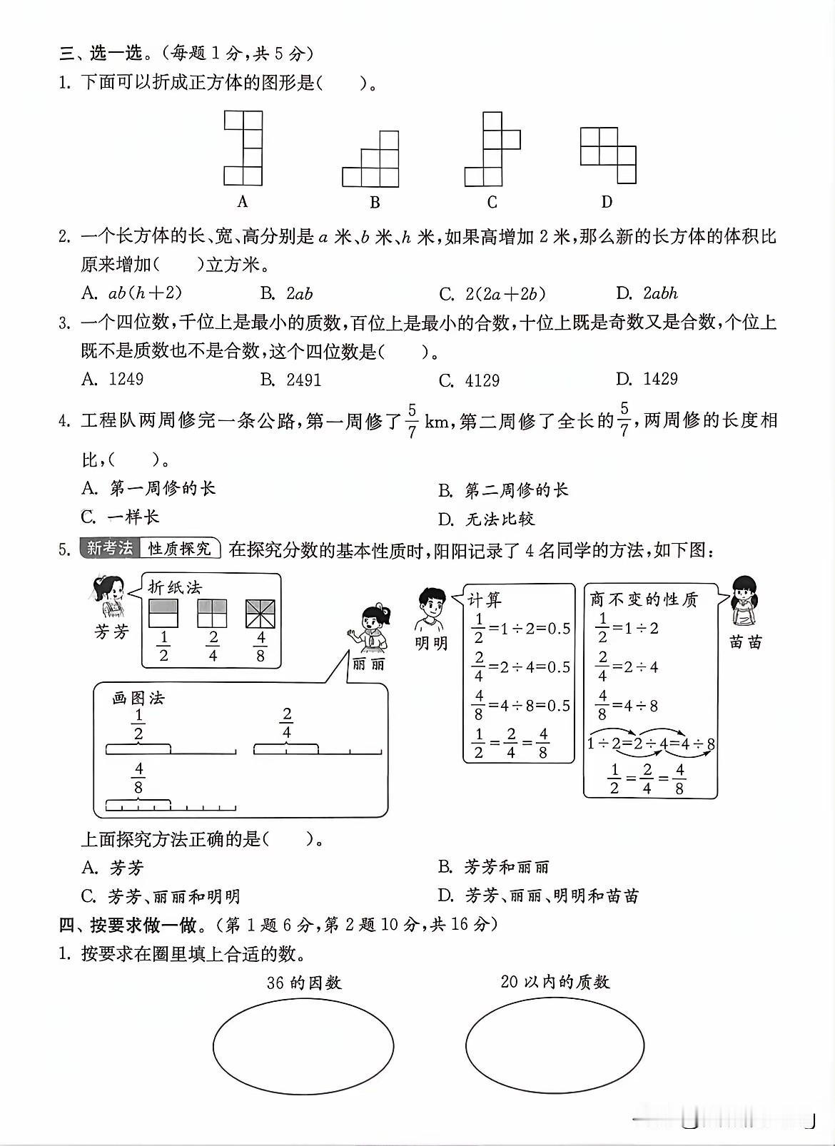 五年级下册数学期中拔尖测试卷(3套),挑战思维极限!