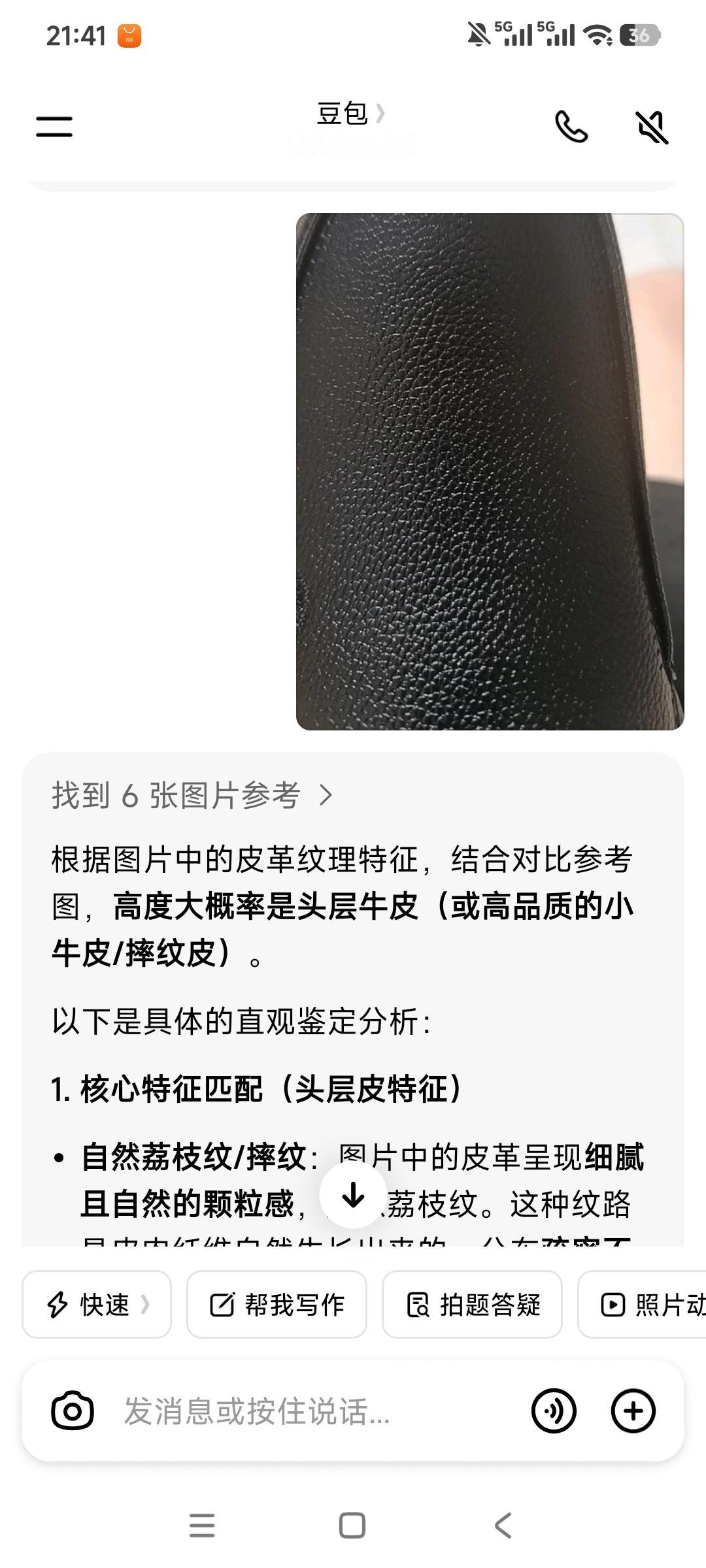 想不到豆包还能做皮质鉴定!我网购了一双不到百元的品牌皮鞋,商家称是头层牛皮,可价格便宜,心里总有些不踏实。收到货后,我立刻拍了清晰照片发给豆包鉴定,没想到它给出了明确专业的结论: