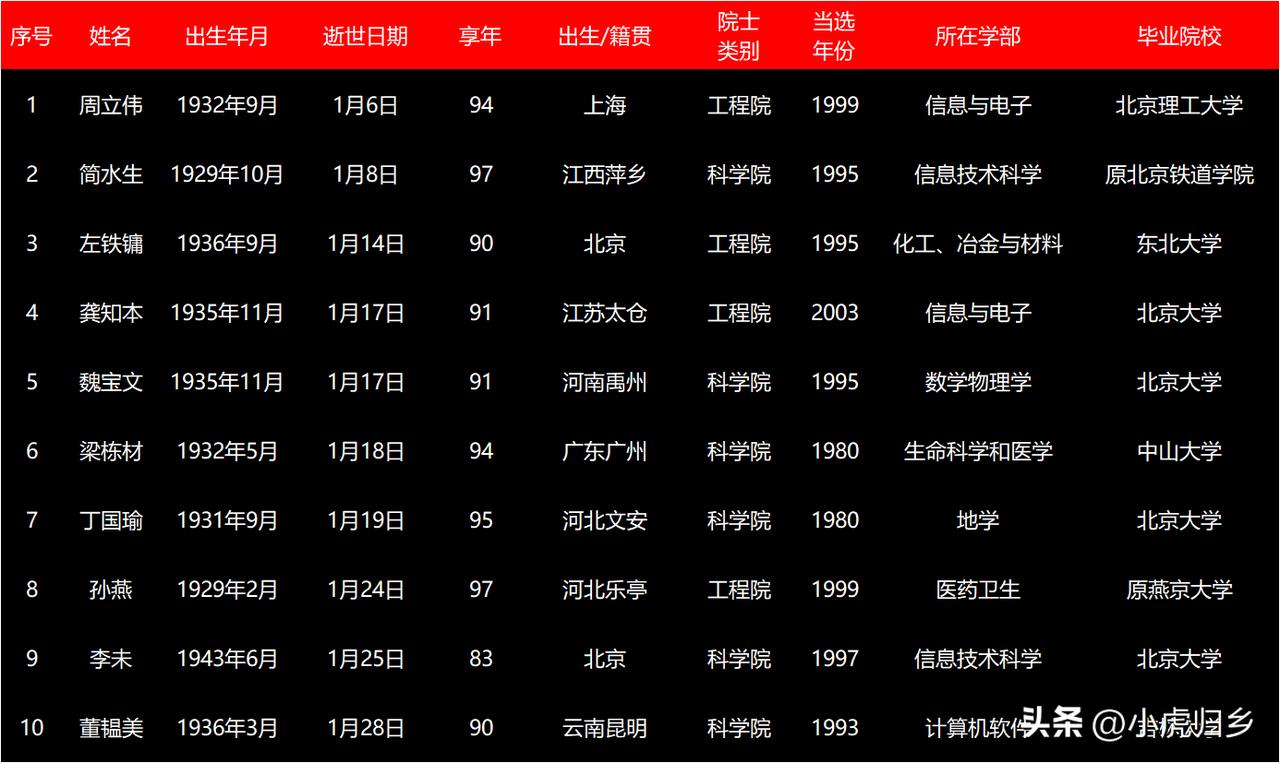 默哀,送别!2026年1月,已有10位中国两院院士逝世,包括4名北大校友! 2