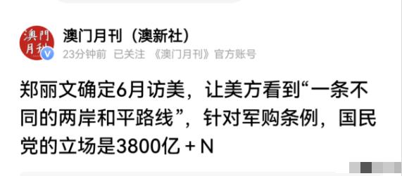 4月13号,郑丽文方面发布消息,确定了将要前往美国进行访问的时间,今年的6月份将会启程,访问美国的纽约、华盛顿、旧金山和洛杉矶4个城市。14号的专访中,郑丽文更是表示,两岸如果要和平要交流,美国是至关重要的角色。