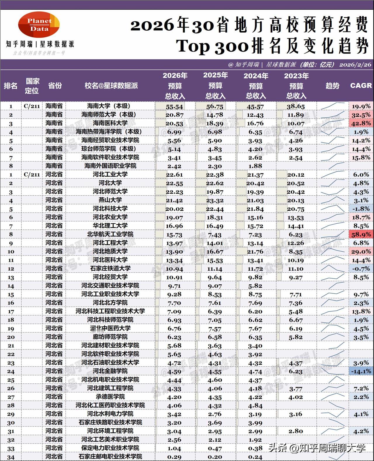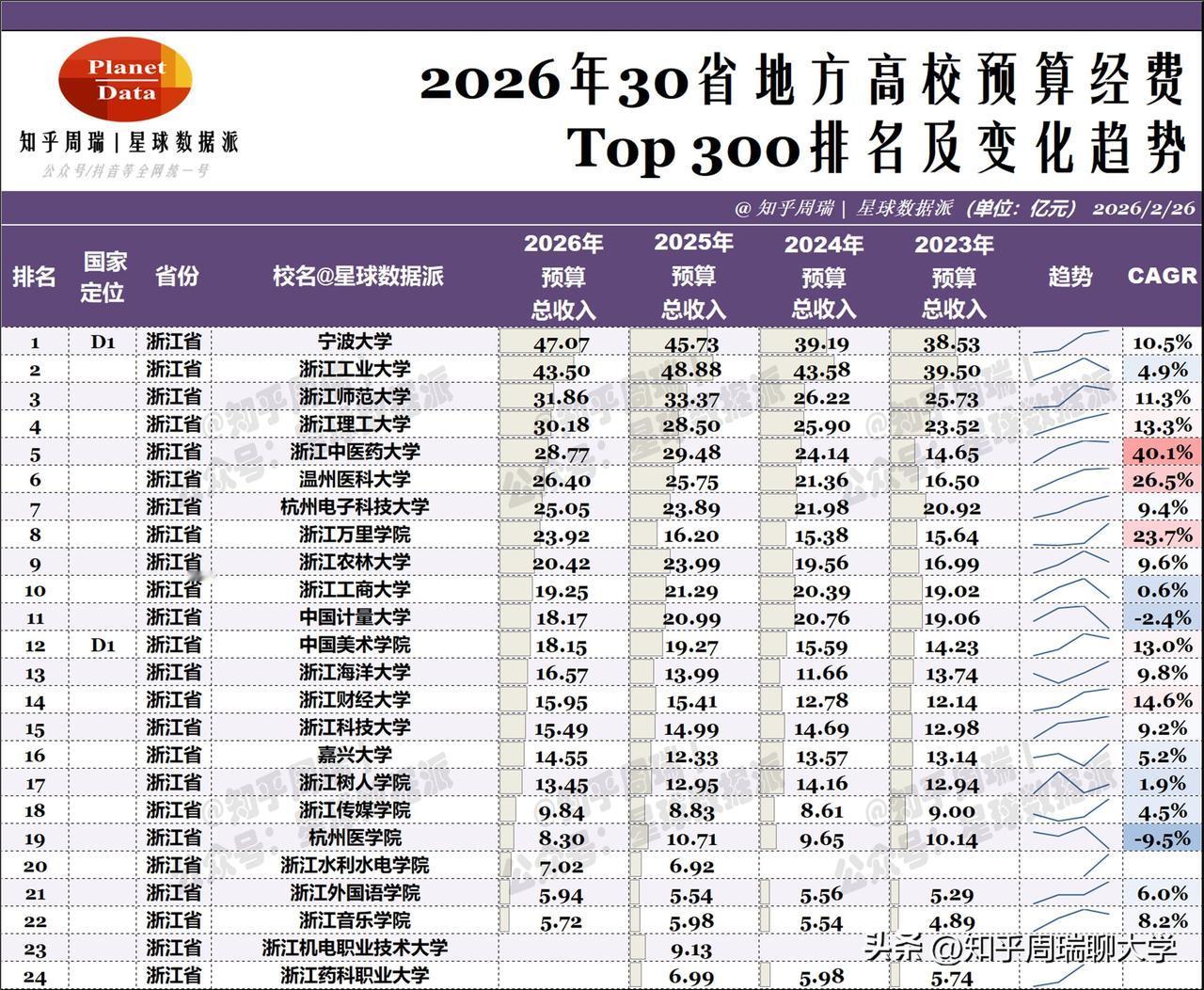 2026地方高校预算大洗牌!海大暂列第一,浙江赢麻了?