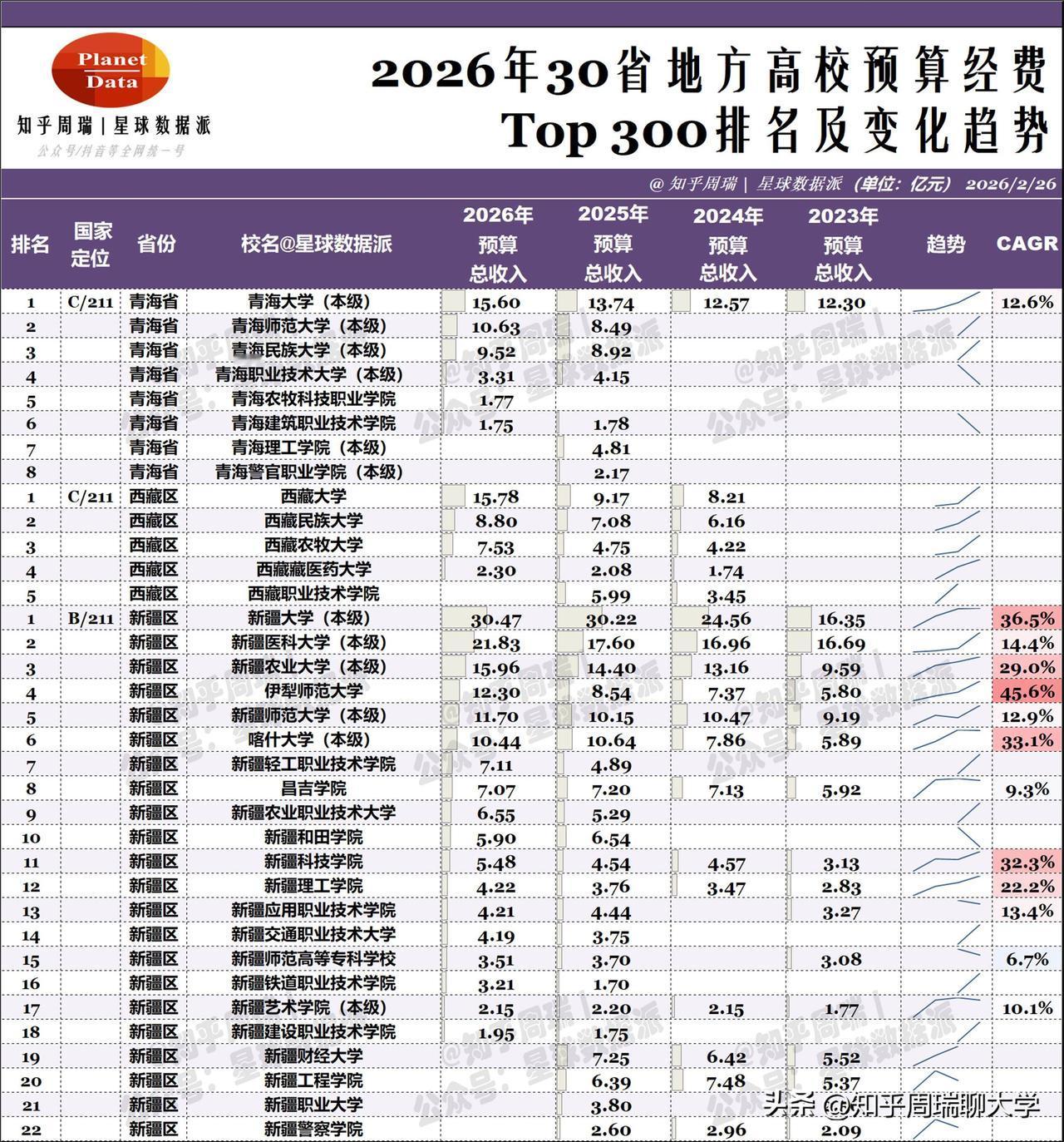 新疆:新大(30.4亿)+新疆医科大(21.8亿),增速36.5%和14.4%,边疆高校正在逆天改命!