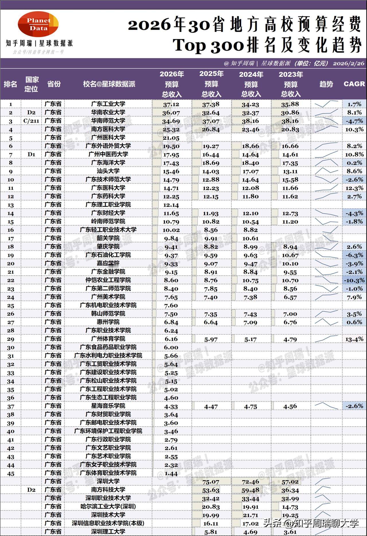 广东高校:广工(37亿)、华农(36亿)、华师(34亿)组团冲进前十,但华师预算居然三连跌?❄️