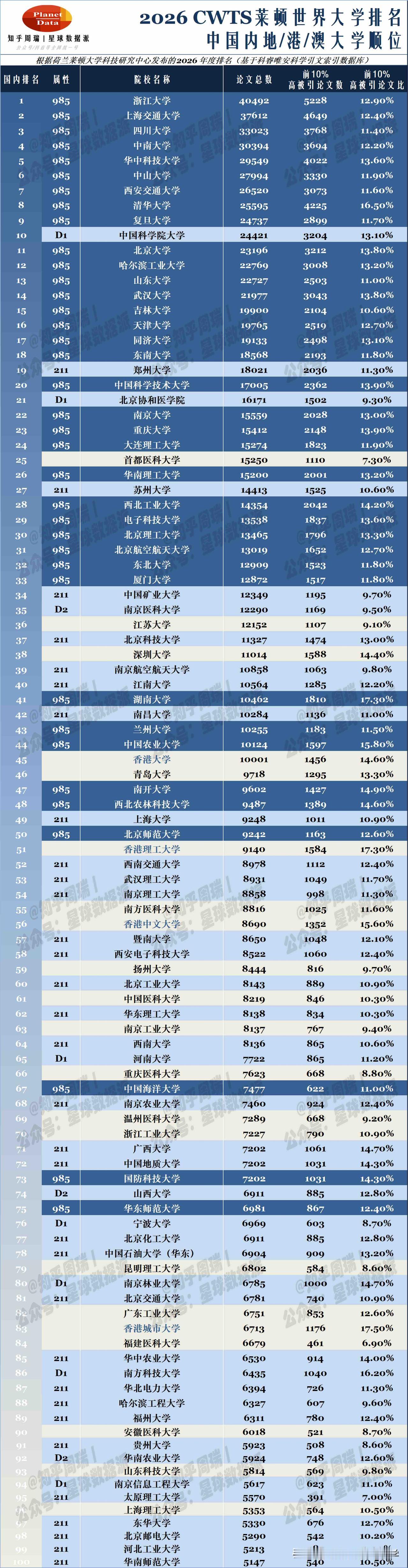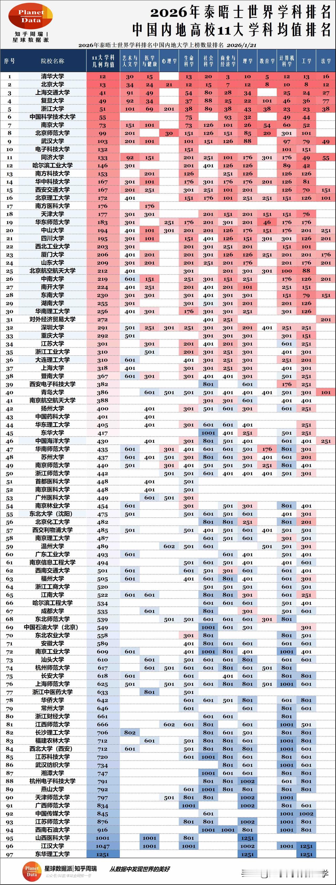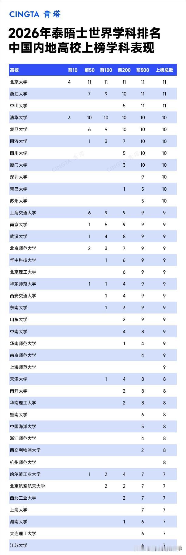 从2026年泰晤士世界学科排名上榜总数看,北大、浙大、中山名列前三,11大学科全部上榜;深圳大学以10个学科闯入前10;西电名列211第一名!谁是最大赢家?