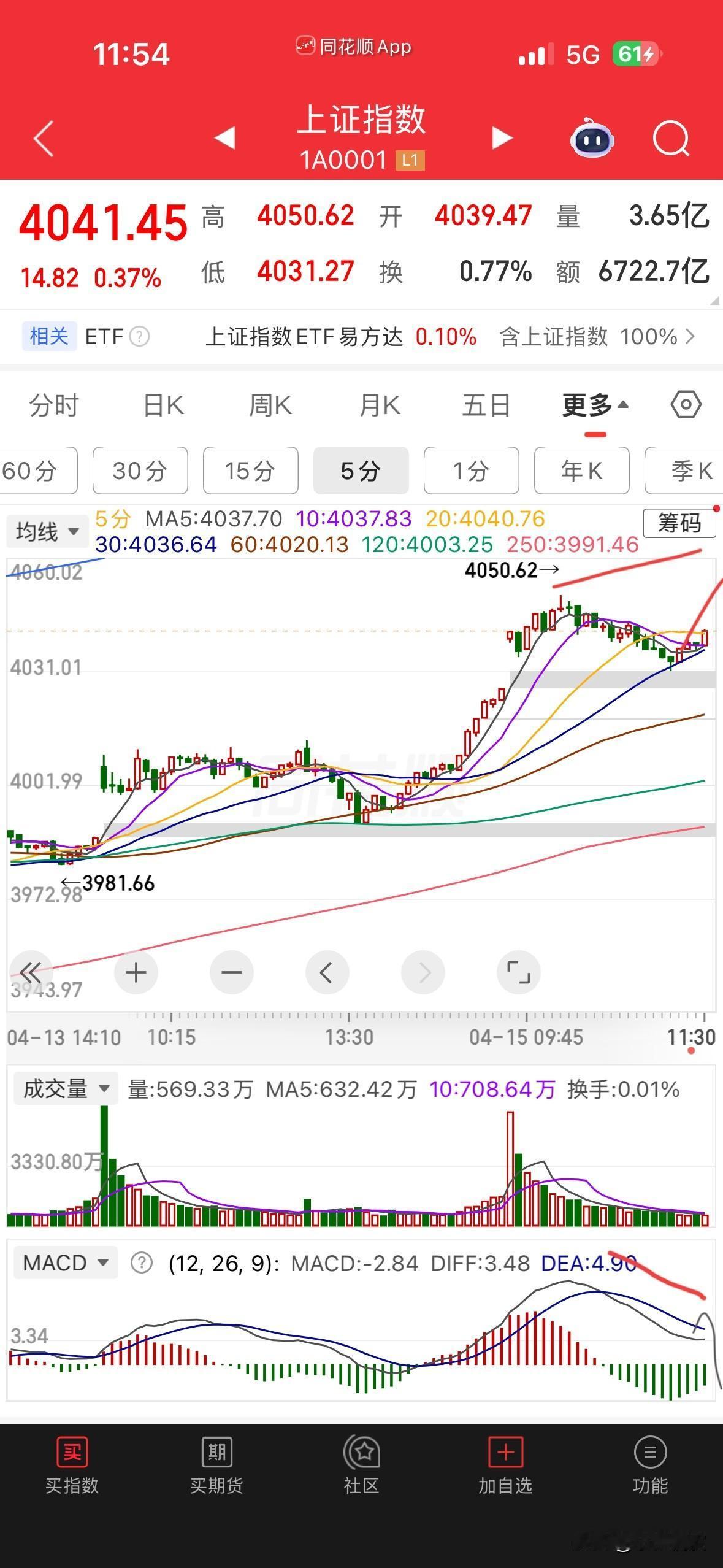 如果只是5分钟的顶背离程度,那么这波短期回调的空间应该不会太大,我认为补掉下方的两个缺口位置就差不多了,也就是3990点左右,说不定按照大A的尿性,下方第二个缺口不一定就会一次补完,反而可能留下一点点又反身向上突破新高去了。