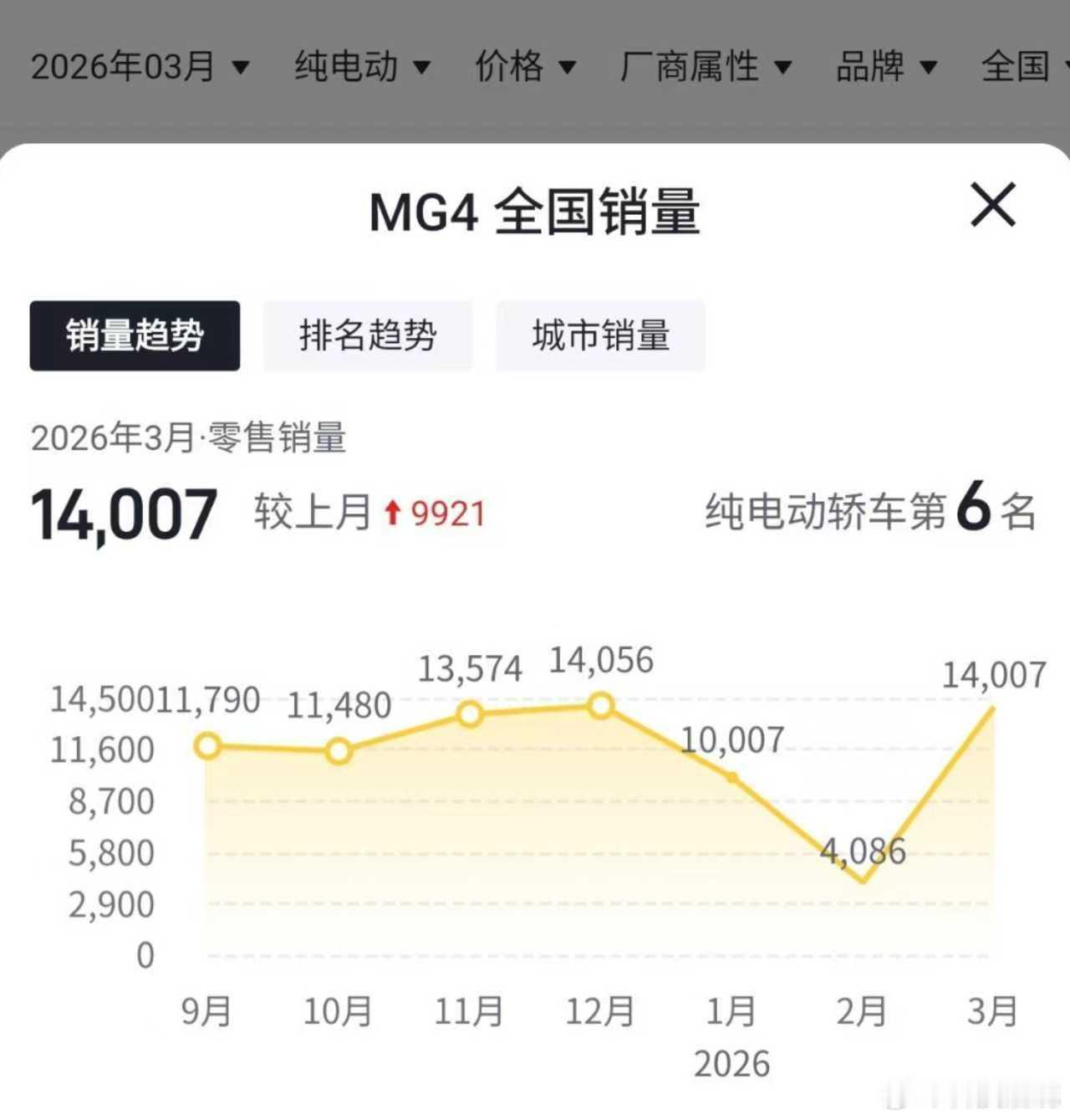 全新MG4卖爆的逻辑特别朴素:技术普惠+价格实在,把半固态电池、一体式热管理系统这些高端技术,直接下放到10万级市场。没有溢价,全是硬实力,用亲民价格给到越级体验,精准打动普通消费者。在内卷的纯电市场,这种实实在在让利用户的车型,才是经得起市场检验的真爆款。智驾数码团