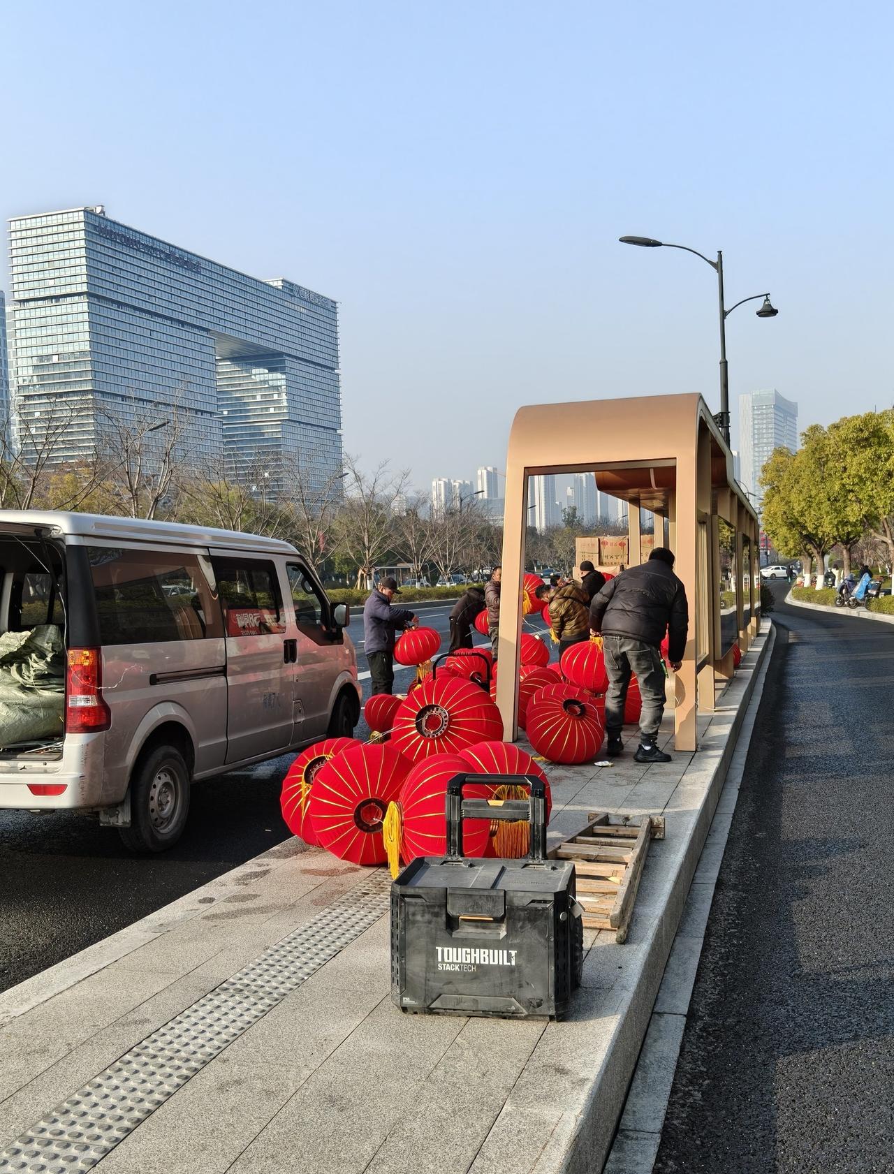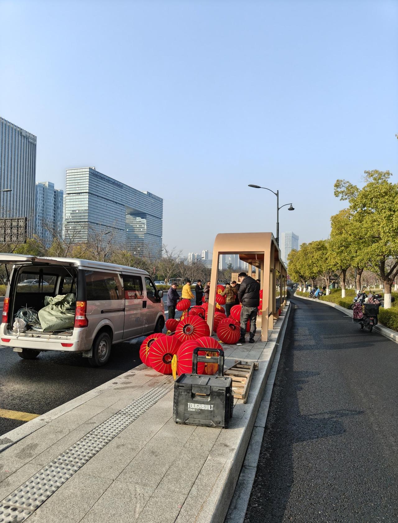 那天路过🚌公交站,看到好多工作人员在搬卸、分发大红灯笼🏮。