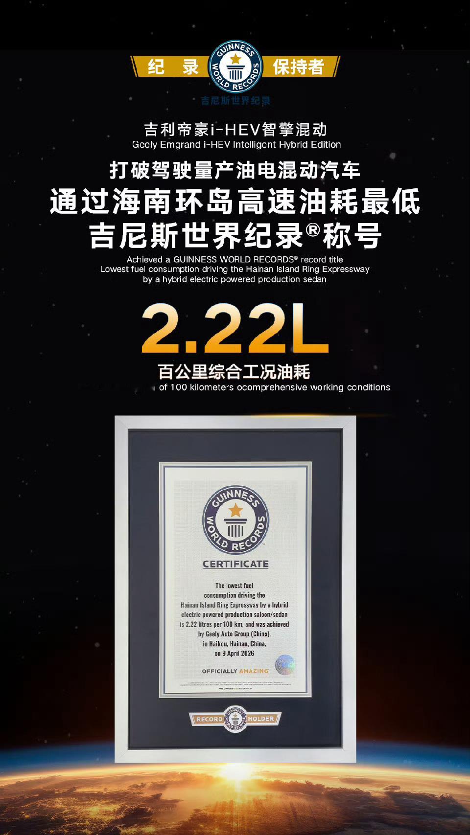 这套系统搭载了星睿AI云动力2.0大模型。它能实时感知路况、天气和你的驾驶习惯,提前预判并调整油电分配,真正做到越堵越省油、越开越懂你。再加上48.41%的全球量产最高热效率发动机,第5代帝豪i-HEV还创下了2.22L/100km的吉尼斯油耗纪录。