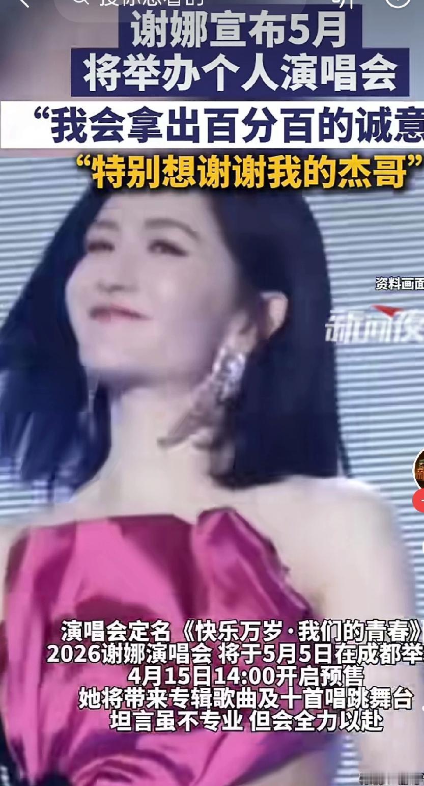 谢娜近日正式宣布,将于5月份举办个人演唱会。