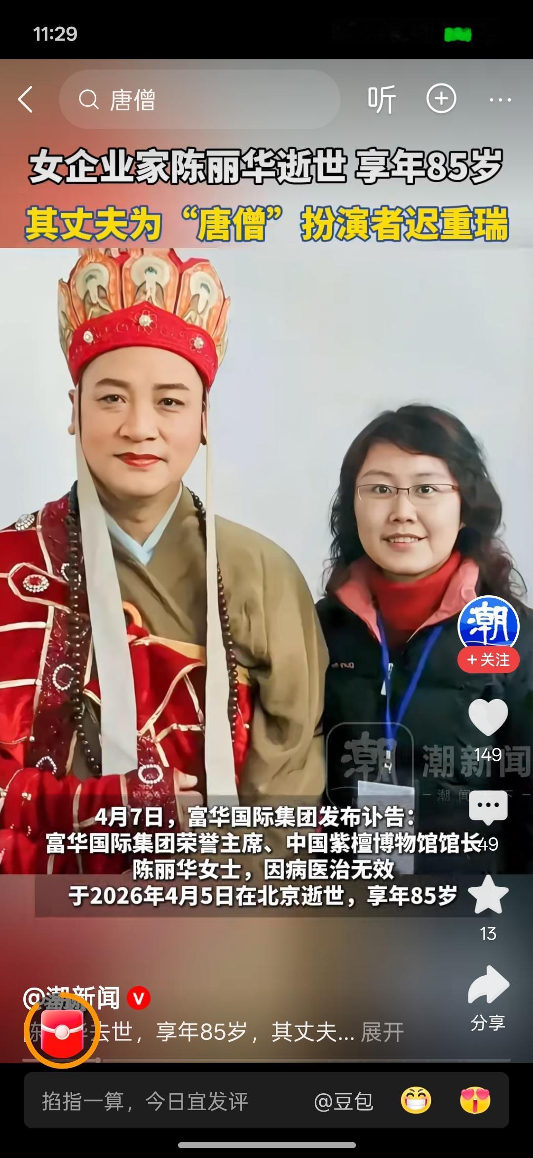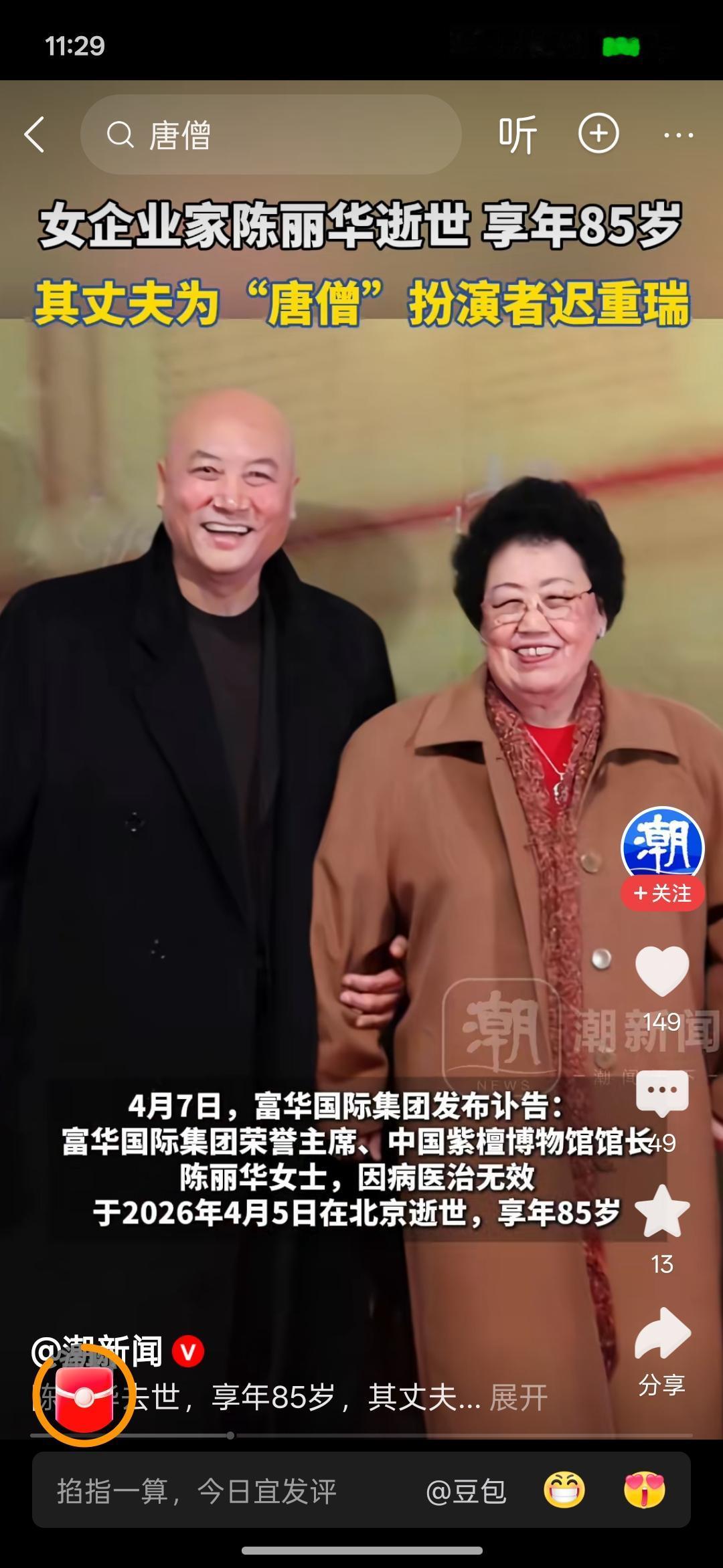 如今陈丽华女士骤然离去,留下迟重瑞独自面对往后余生,心中的悲痛与思念难以言表。往后漫长岁月,他只能在回忆里重温昔日温情,独自走完余下的人生道路。