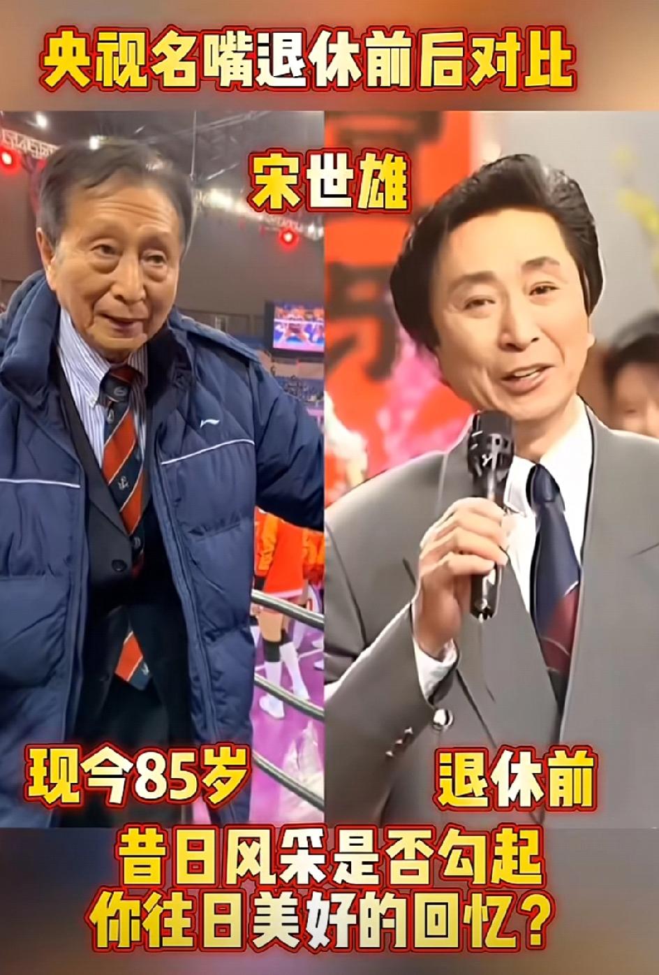 宋世雄,竟然白发苍苍的老年人,已经八十五了,记得他讲起体育新闻也是妙语连珠,如今老态龙钟了。