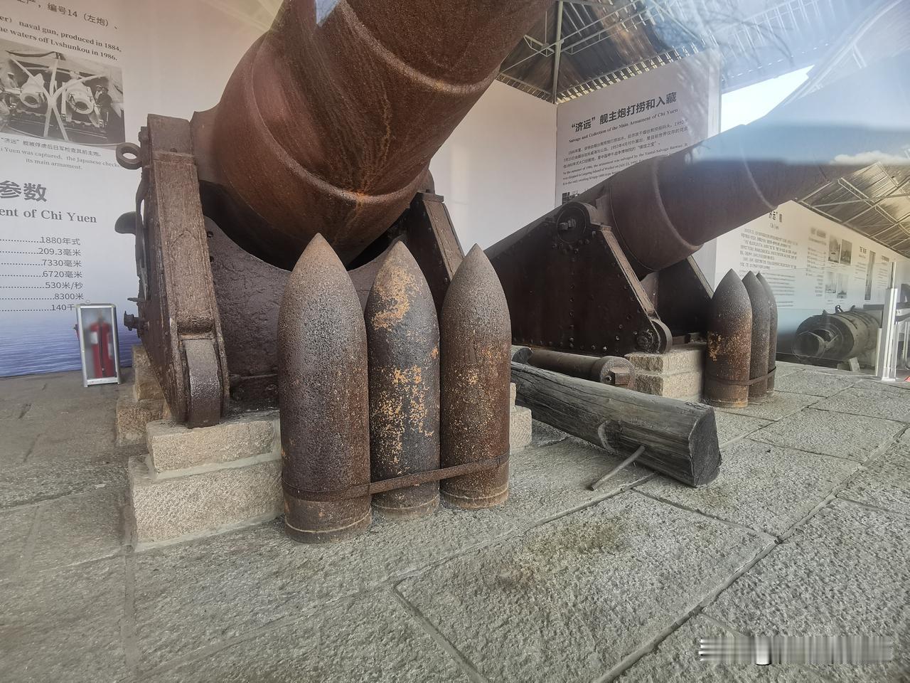 济远舰的210毫米主炮,据说有人为砸坏的痕迹,但是我看不出来。