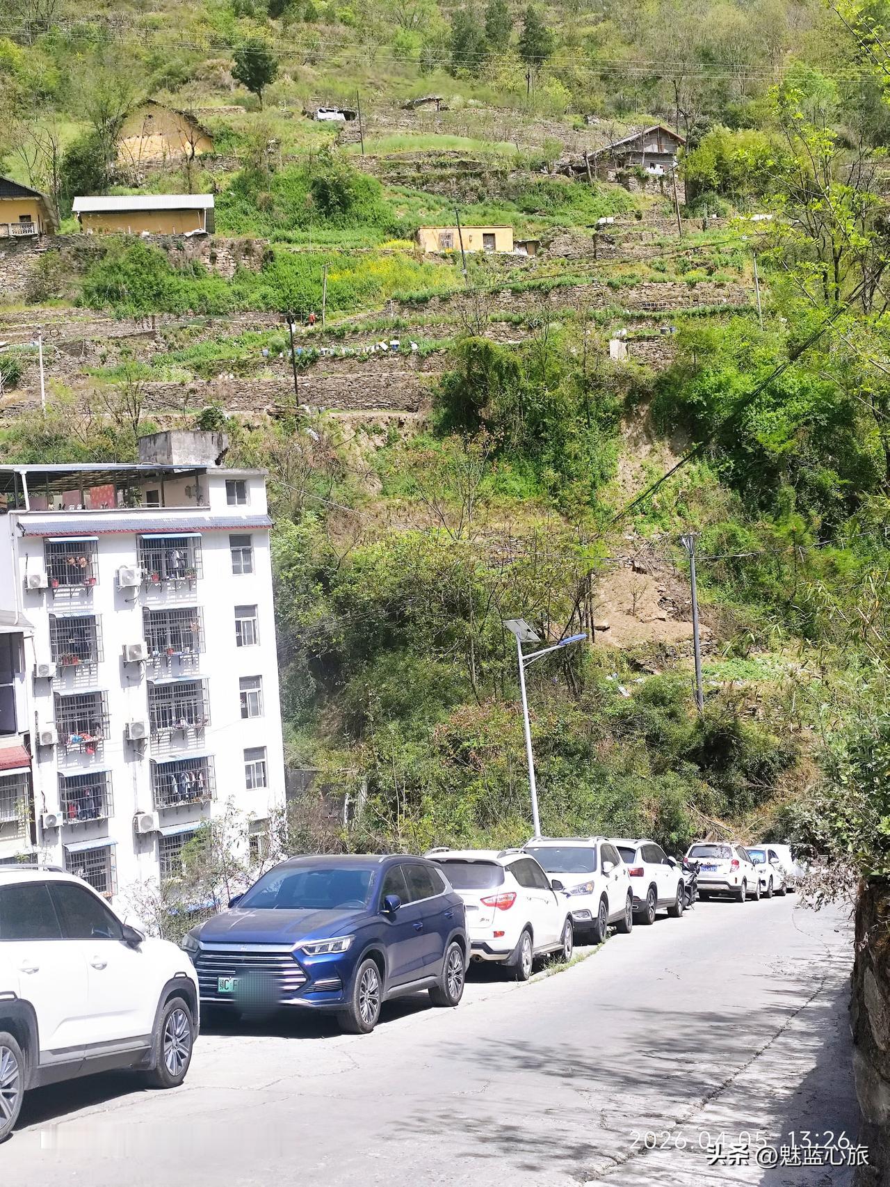 在下山的路上,让我惊叹的还有,稳稳的,因地制宜停在陡峭斜坡上的车辆。因为白河县城,无一处百亩平地,所以也是当地人顺应自然的生活见证。