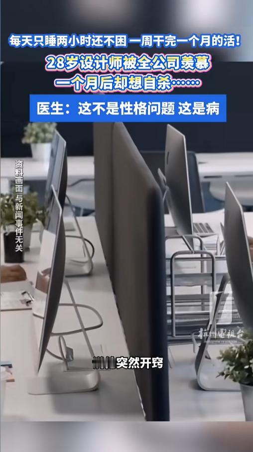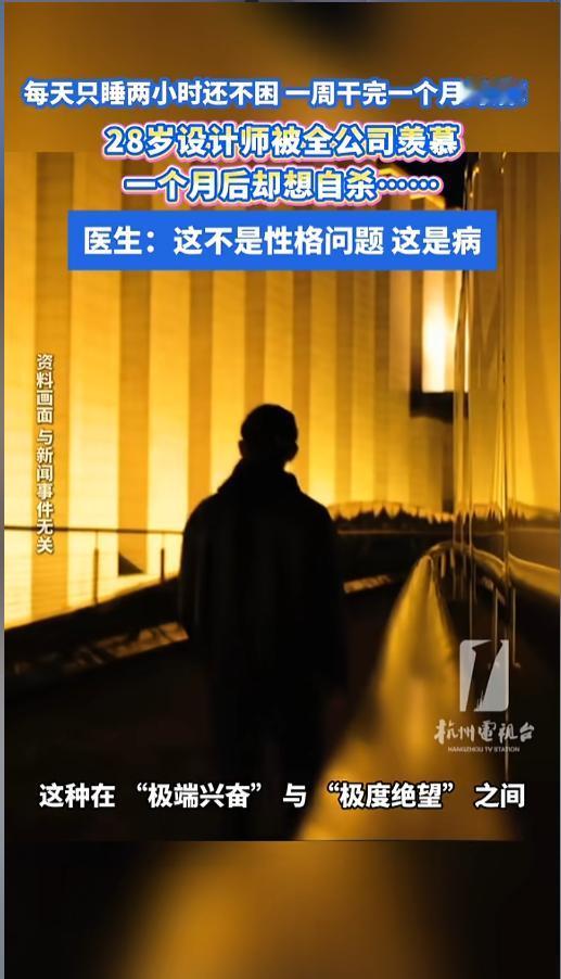 “万万没想到!”近日,浙江杭州,一位年轻的设计师成了全公司羡慕的对象。他每天只睡两个小时,却精力充沛,一周就能干完一个月的活。可仅仅几天后,他就开始消沉,甚至起了轻生的念头!网友:活活被工作逼疯的!