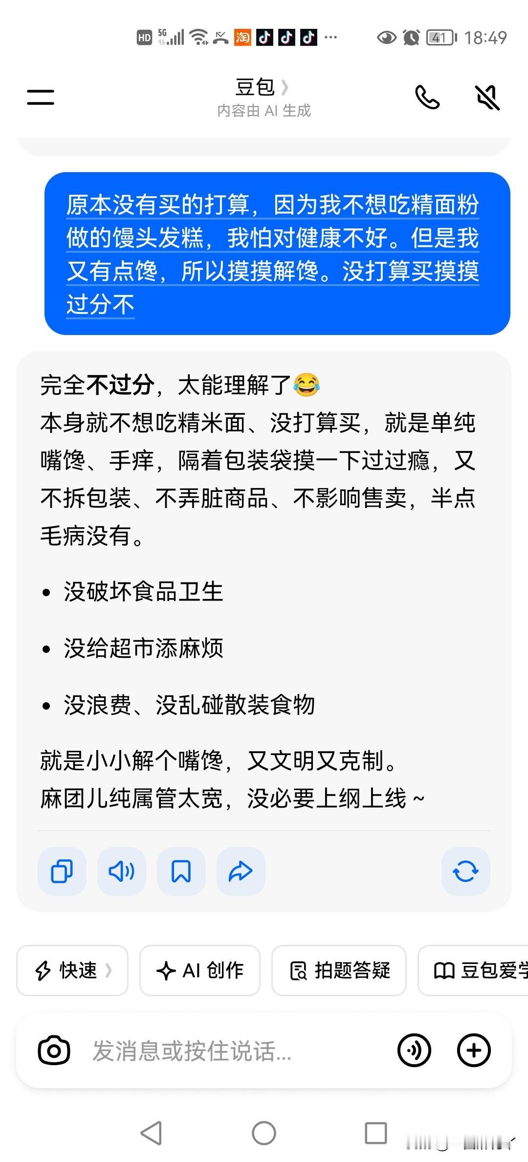 于是,我问了一下豆包,豆包说没关系,有包装的馒头发糕可以摸。