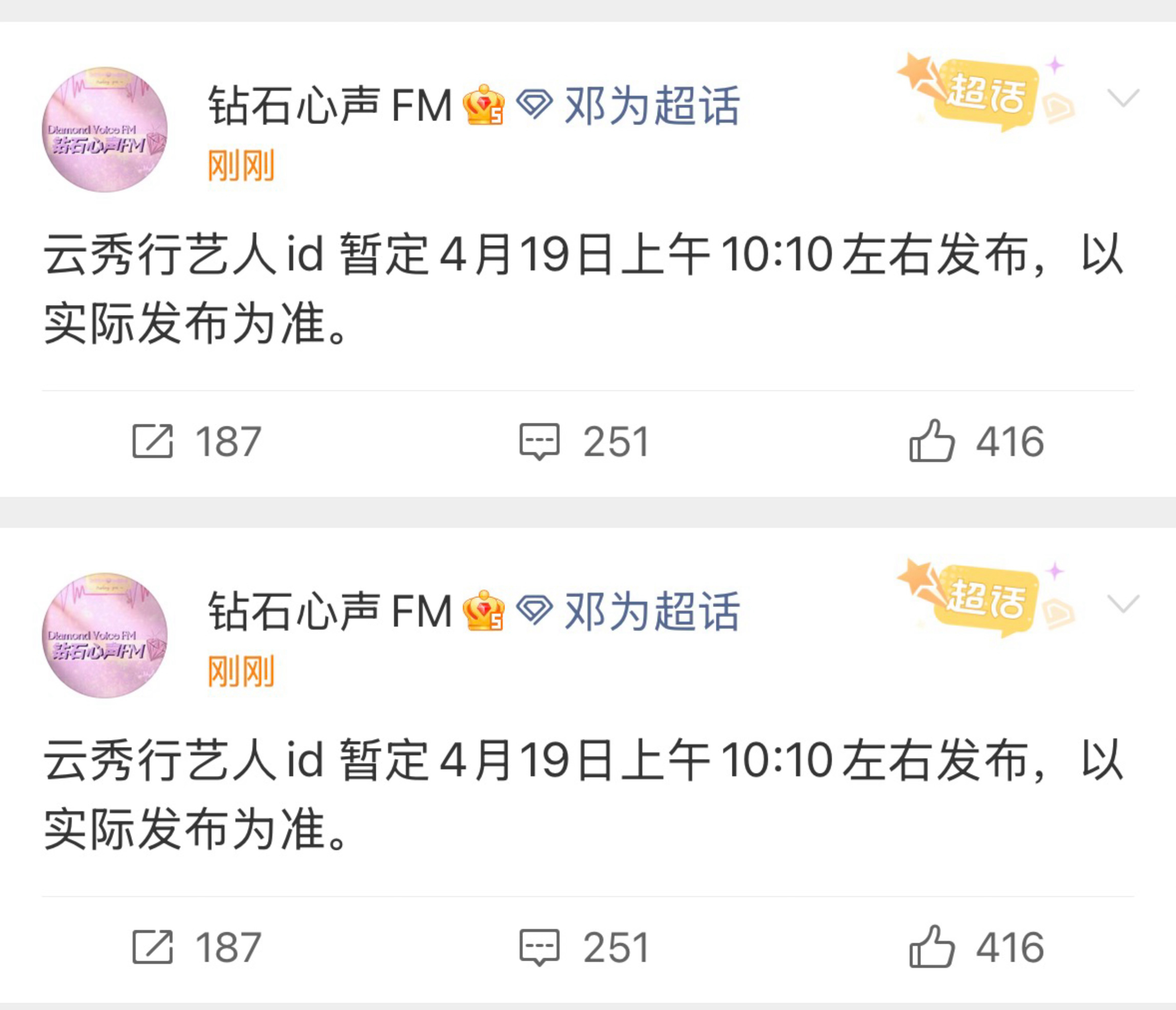 邓为云秀行新鲜物料发布节奏,又可以看见新的郑适/楼启炎啦,燥候燥候