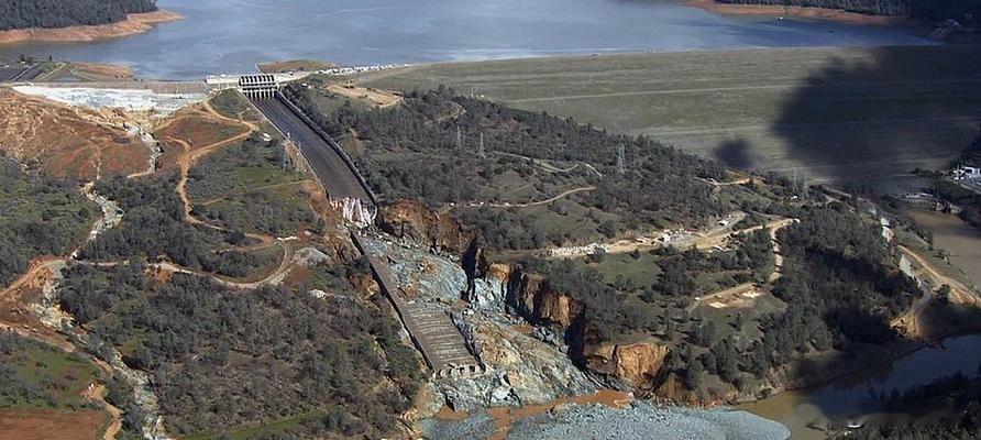 2017年2月,加州奥罗维尔大坝泄洪道崩了,下游将近二十万人摸黑往外跑。这座230米高的大家伙,建成才五十年出头,差点把半个镇子冲了。后来调查报告出来,说是设计有缺陷、排水不行、混凝土太薄,二十多个问题叠在一起。