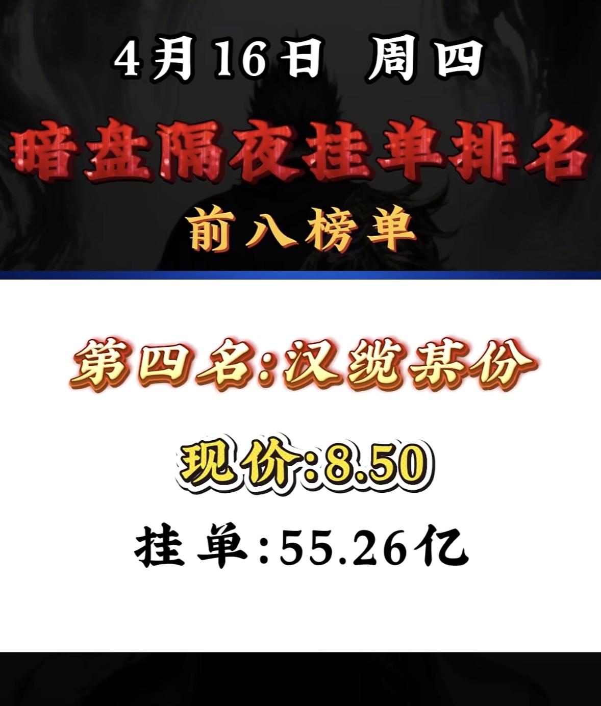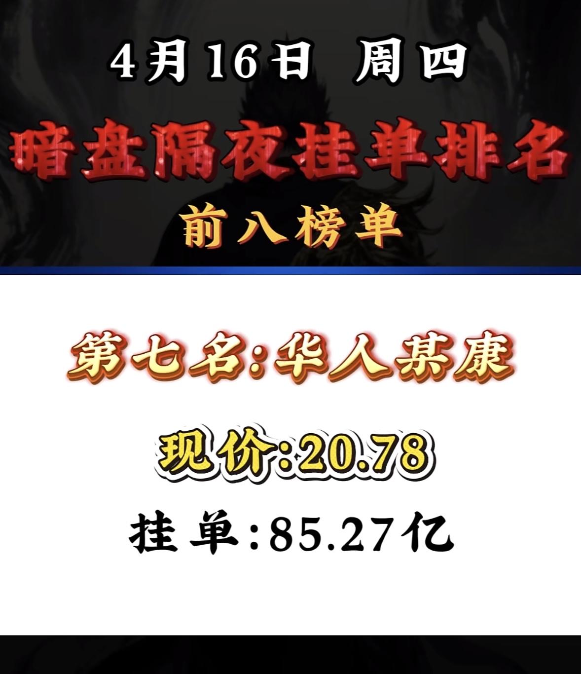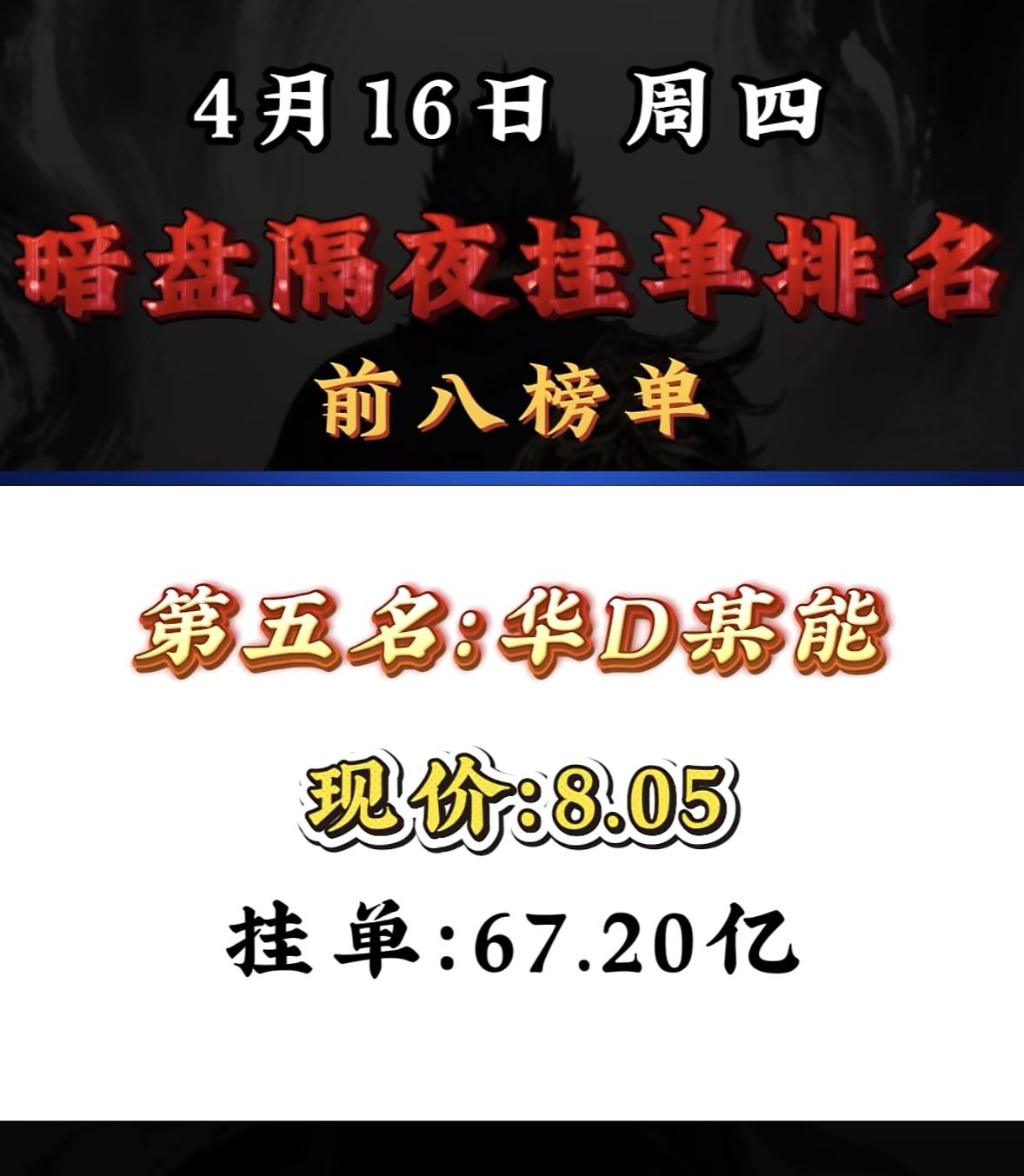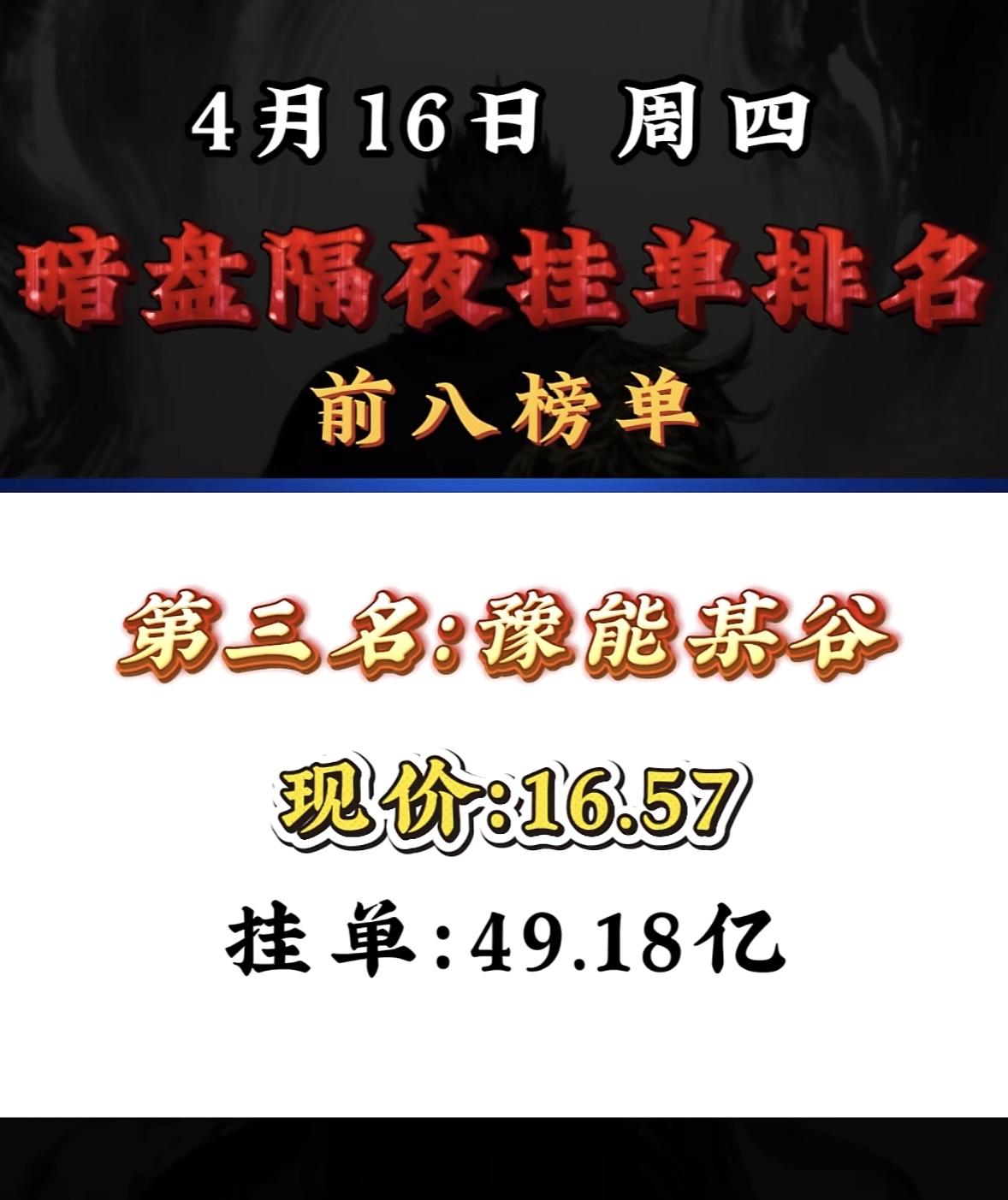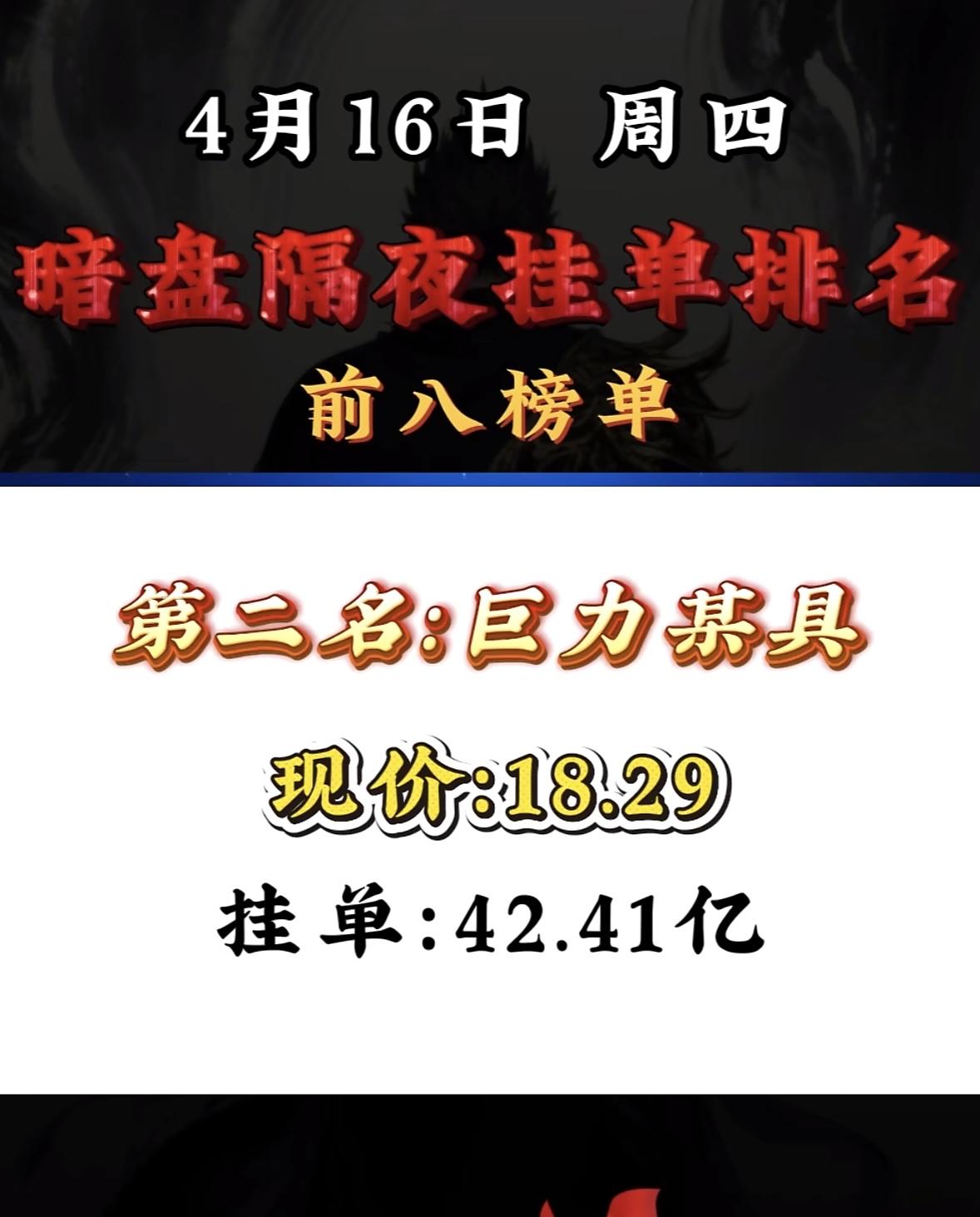 4月16日周四暗盘隔夜挂单排行榜出炉