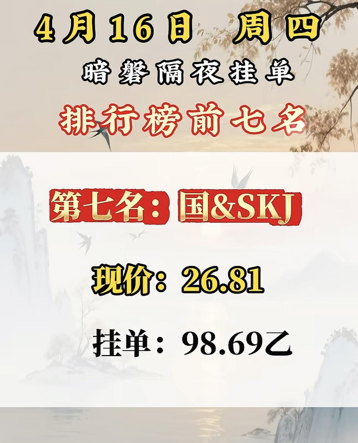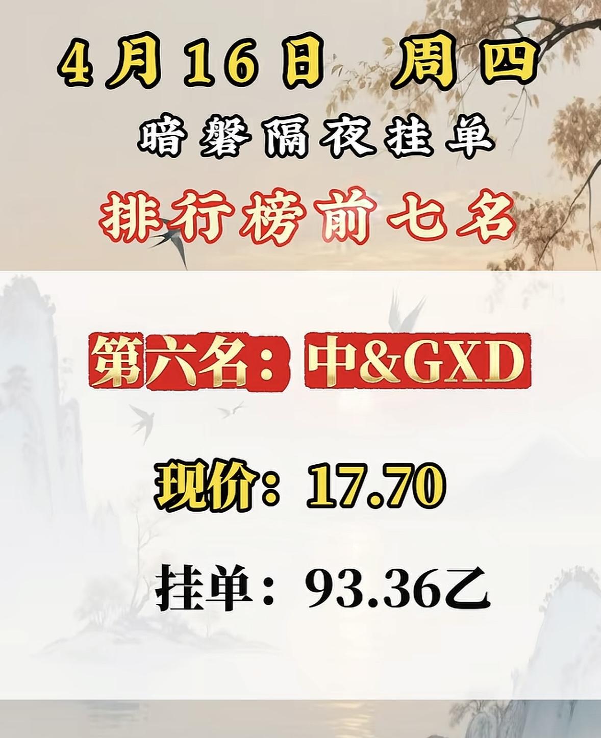 4月16日周四暗盘隔夜挂单排行榜出炉 4月16日暗盘榜前七名里,国晟科技挺惹眼