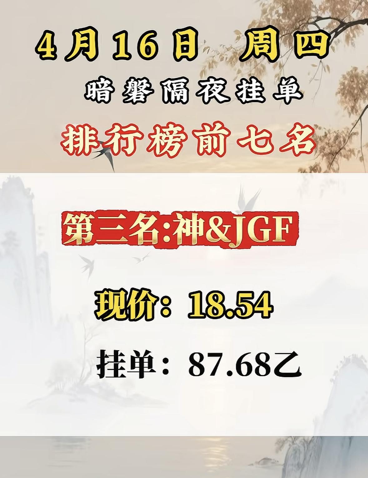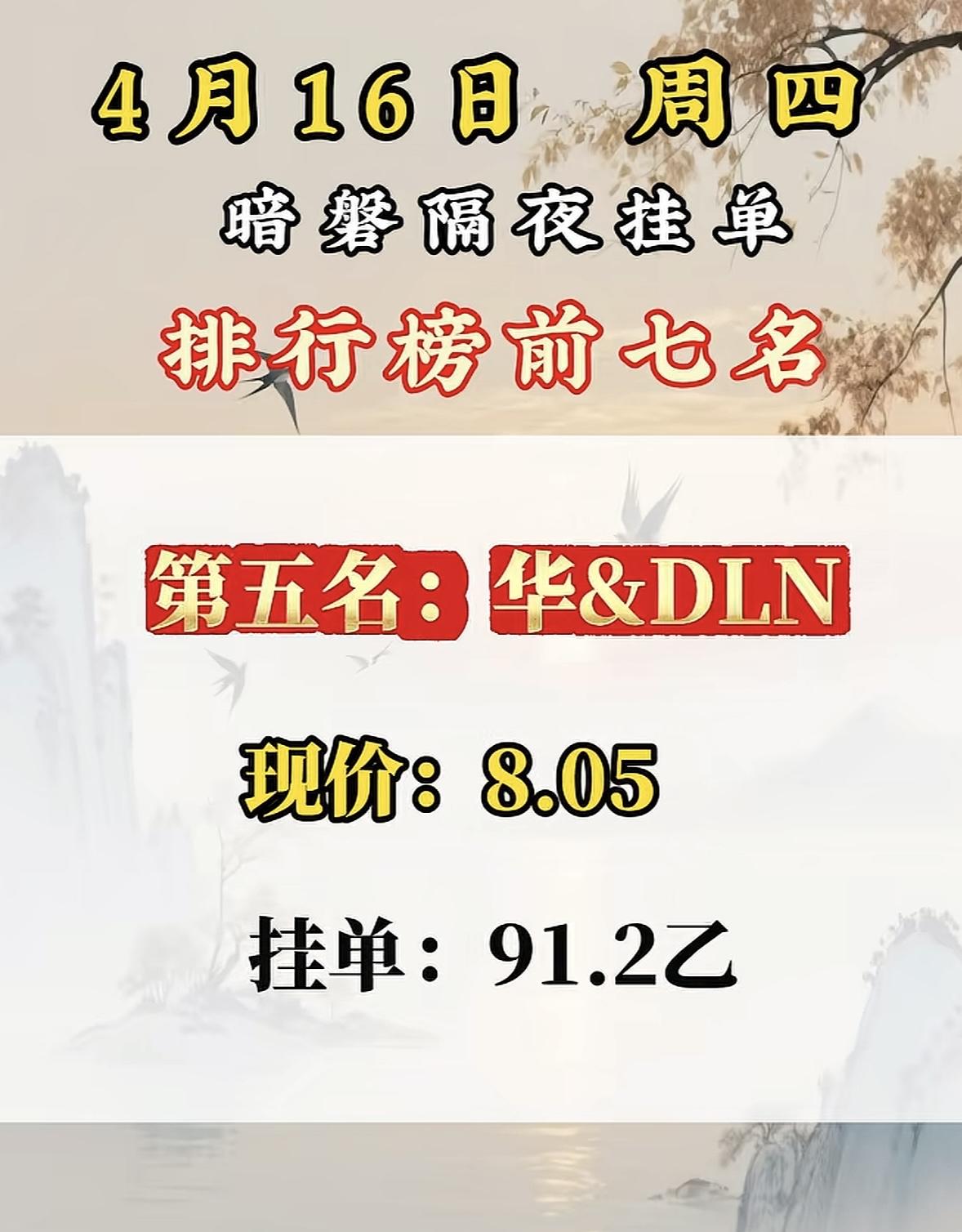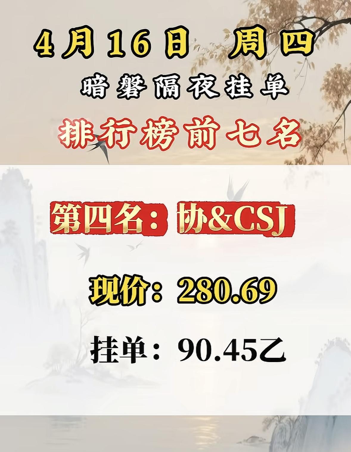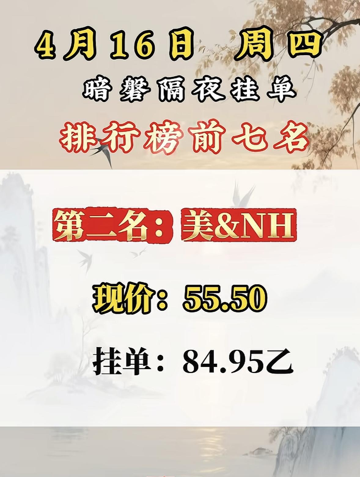 4月16日周四暗盘隔夜挂单排行榜出炉