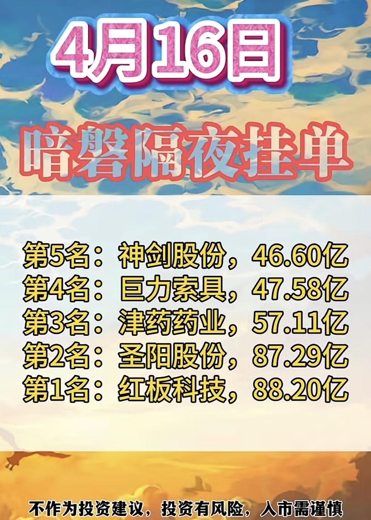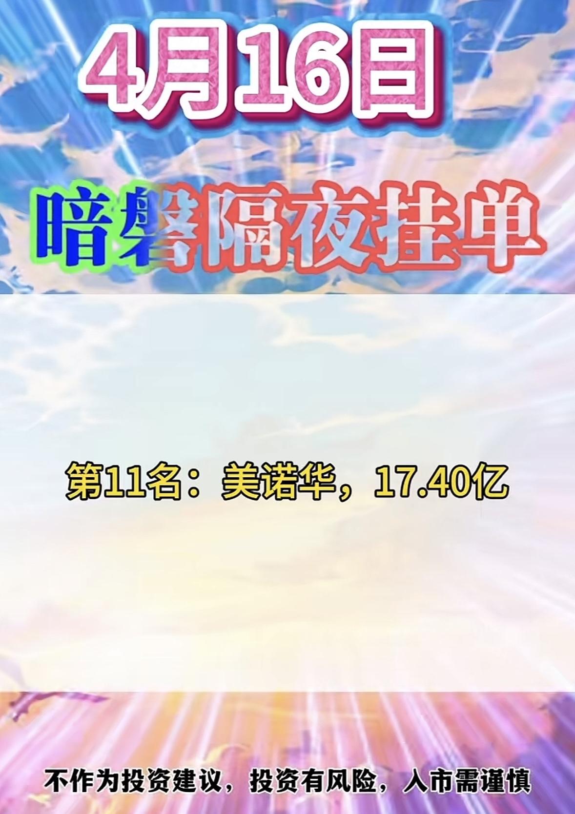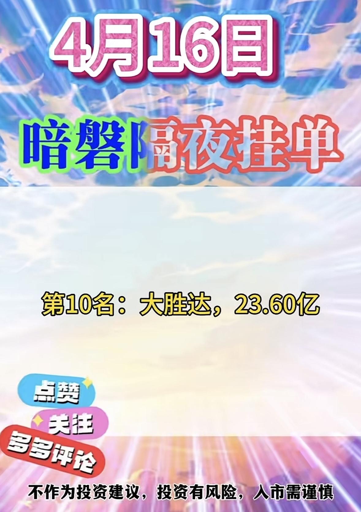 4月16日周四暗盘隔夜挂单排行榜揭晓