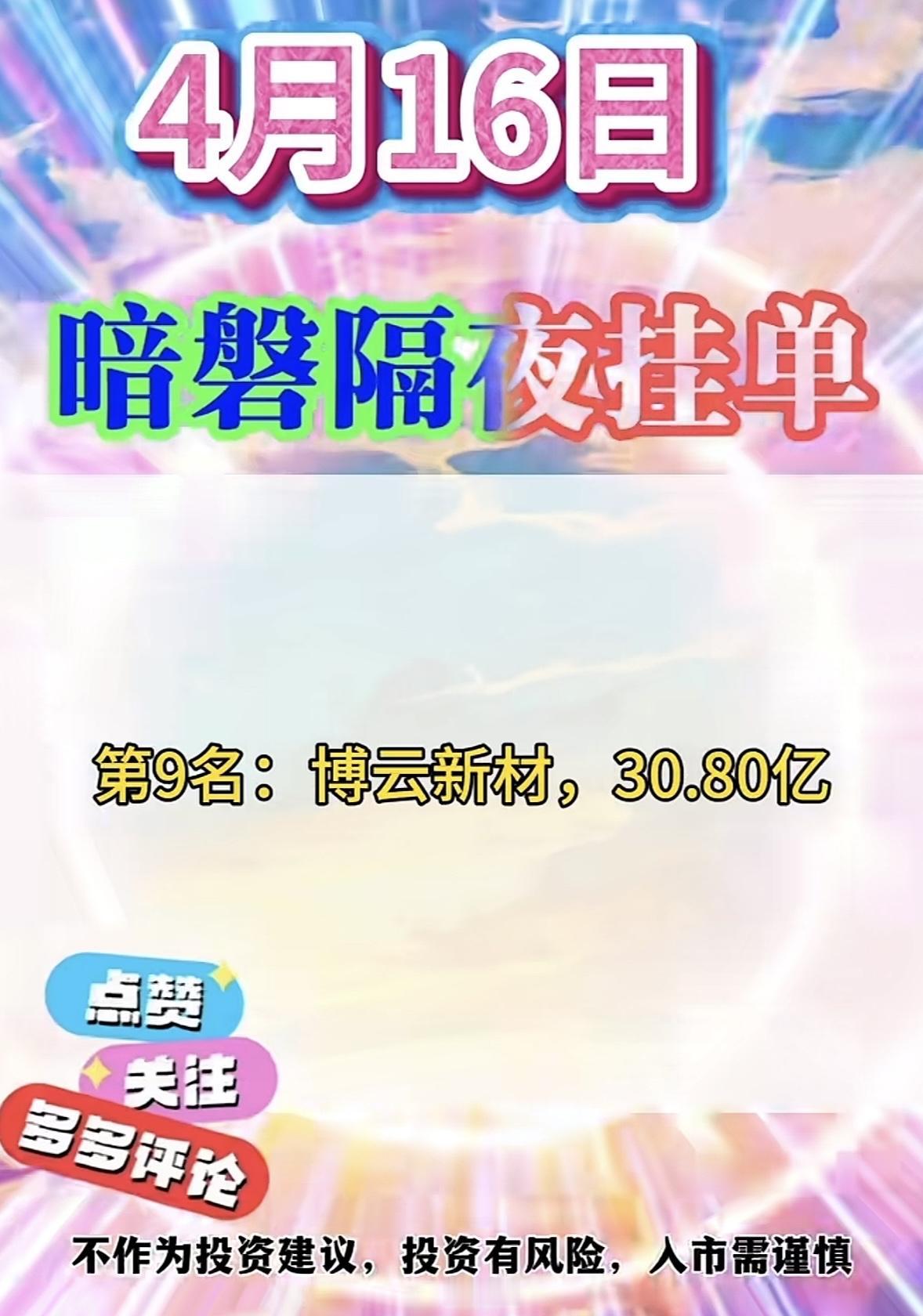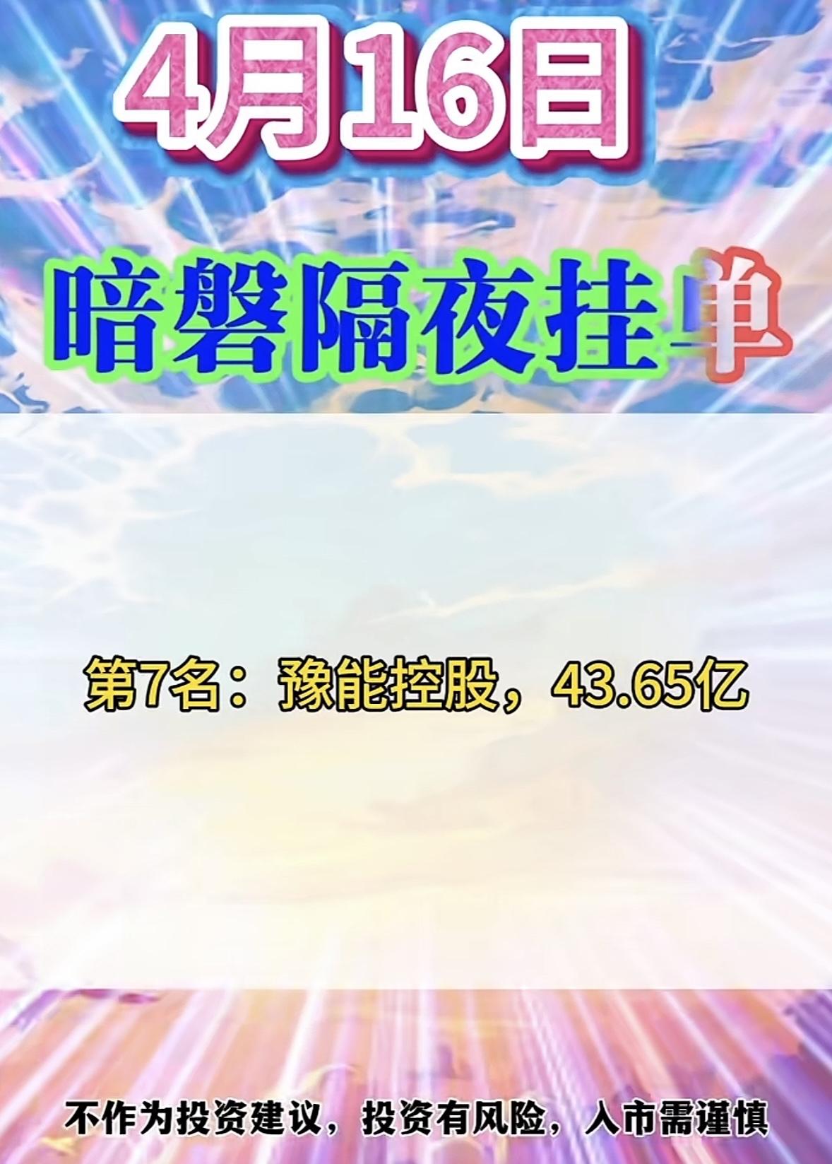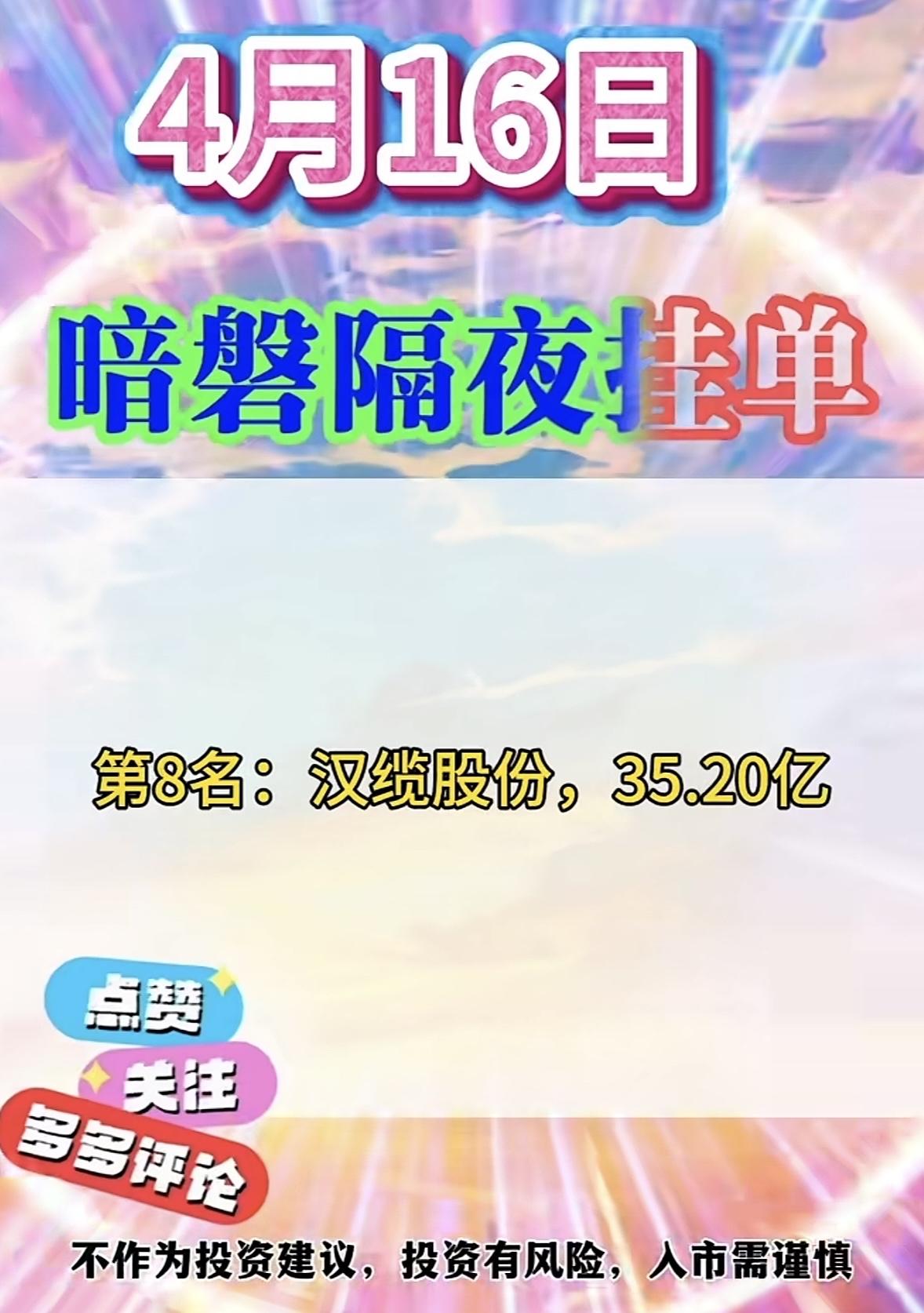 4月16日周四暗盘隔夜挂单排行榜揭晓
