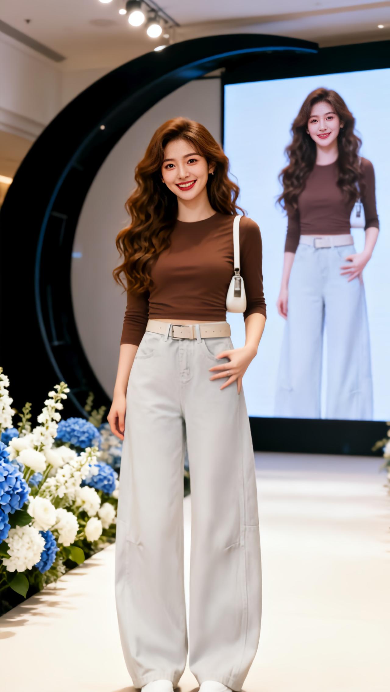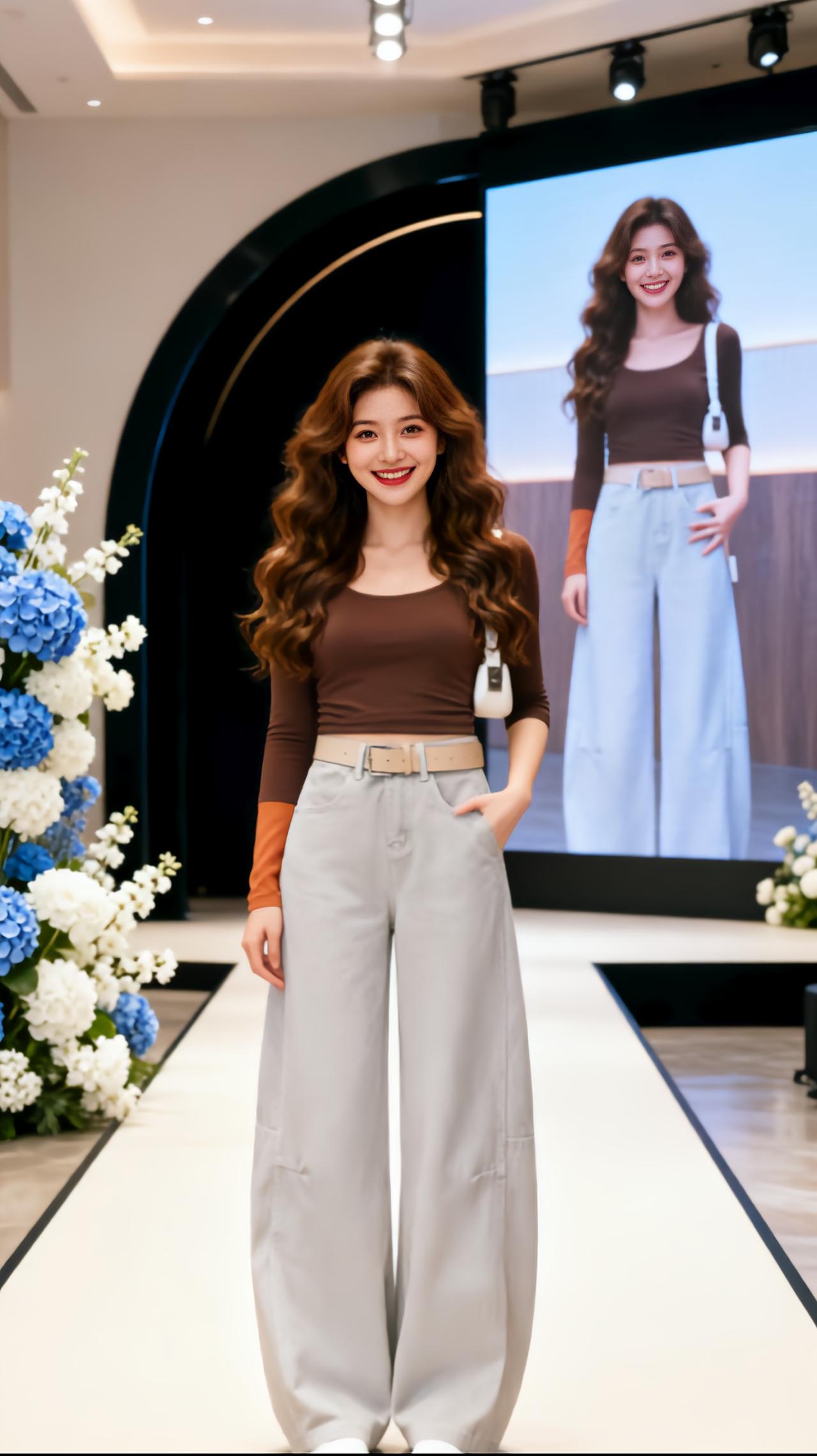 拖地裤 穿搭 同款显瘦高腰阔腿裤 秀场 直筒显瘦秀场同款长裤