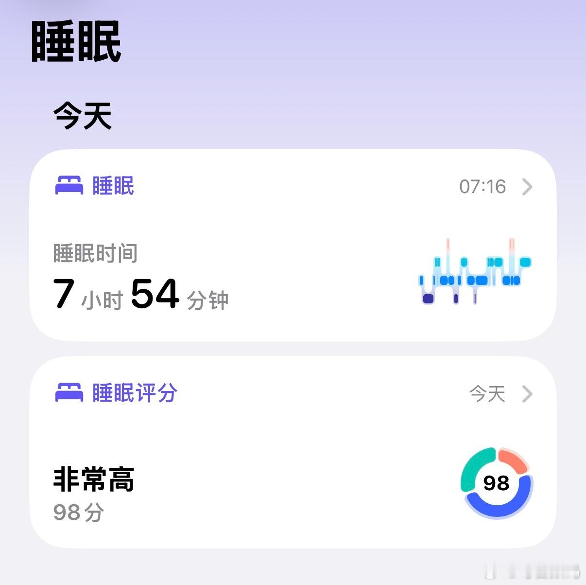 我觉得我现在最幸福的事,就是能睡个好觉,昨天睡眠评分98分,做了几个美梦