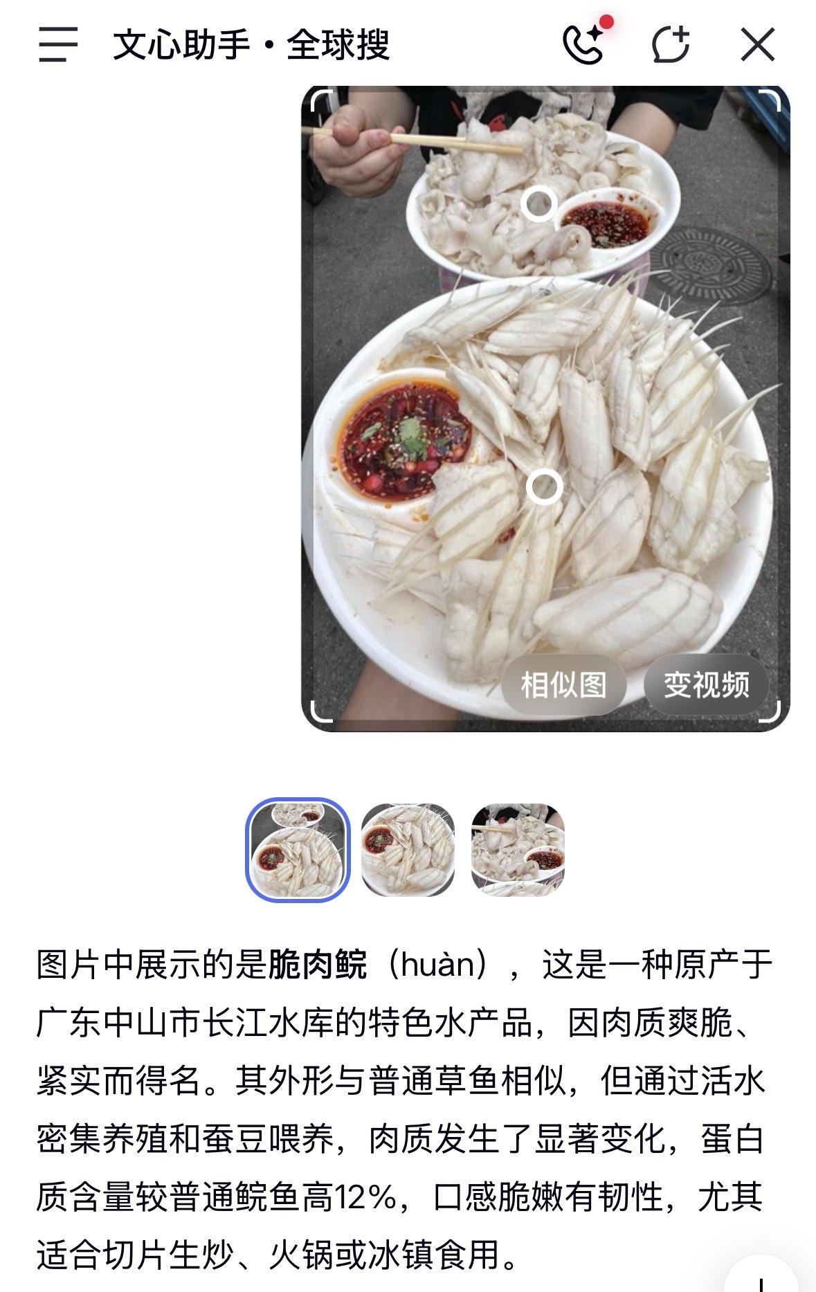 脆肉鲩,广东中山的特产,这种鱼是吃蚕豆长大的,口感就是脆脆的。 本身没味儿,吃
