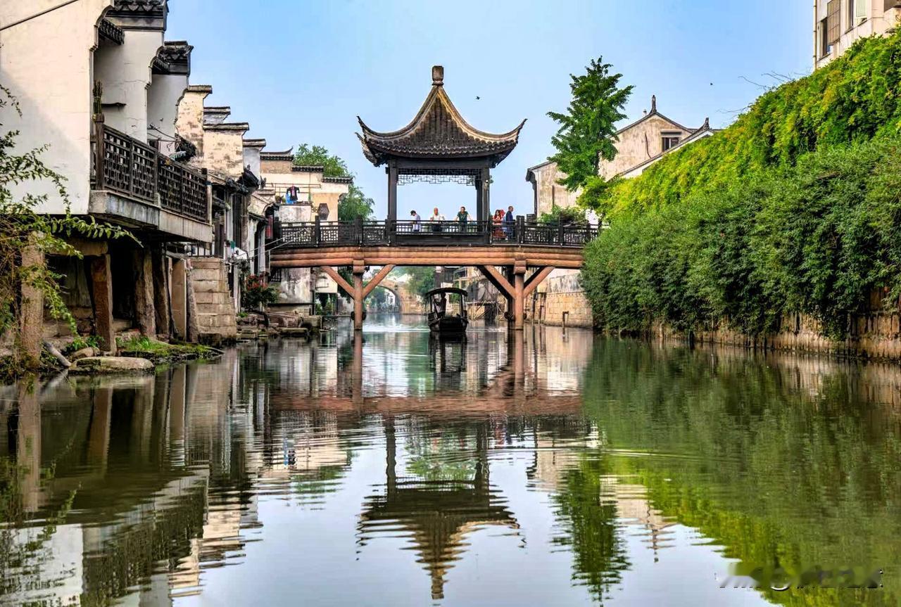 从国宝国画鉴赏视角来看,这般白墙黛瓦、亭桥映水的景致,正是江南水墨丹青最经典的写生蓝本。