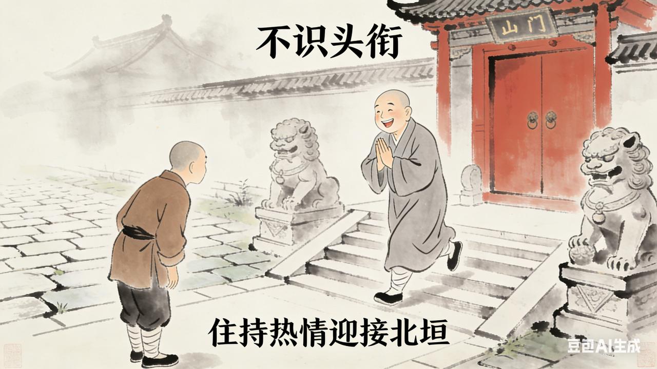 这时住持才出来:“啊,是北垣啊,请到里面坐啊!”