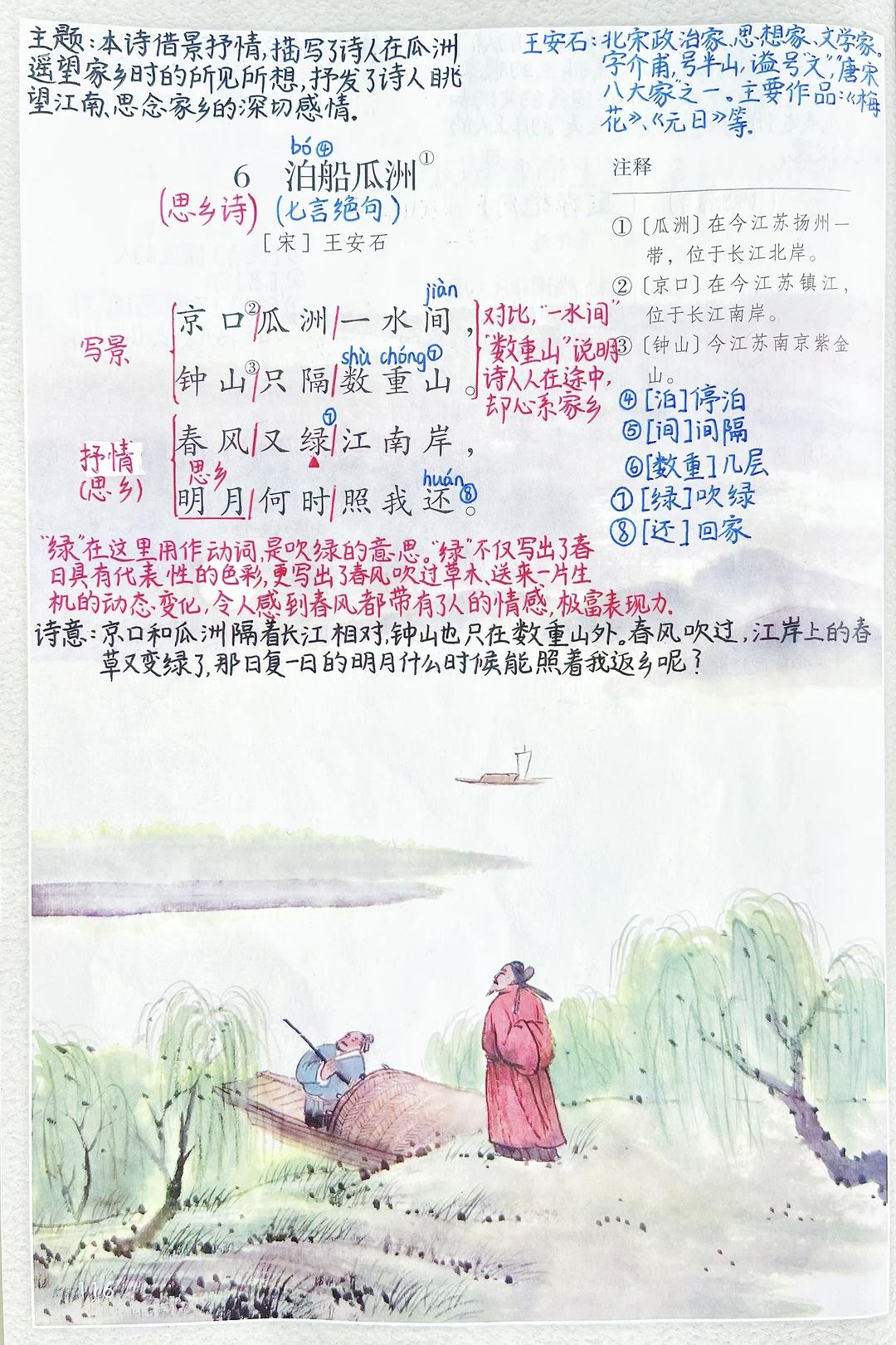 六年级下册语文,古诗词诵读《采薇》《送元二使安西》《春夜喜雨》《早春呈水部张十八员外》《江上渔者》《泊船瓜洲》《游园不值》《卜算子·送鲍浩然之浙东》《浣溪沙》《清平乐》课堂学习笔记,收藏预习复习~